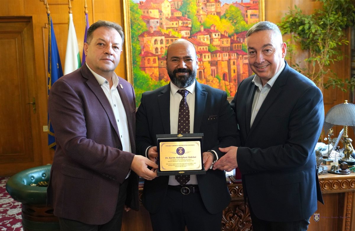 وكان في استقبال الوفد كل من السيدة جوليا ليكومانوفا موتافتشيفا محافظ إقليم فيليكو تارنوفو، والسيد دانيال بانوف عمدة المدينة، و فينتسيسلاف سبيردونوف رئيس مجلس بلدية فيليكو تارنوفو.