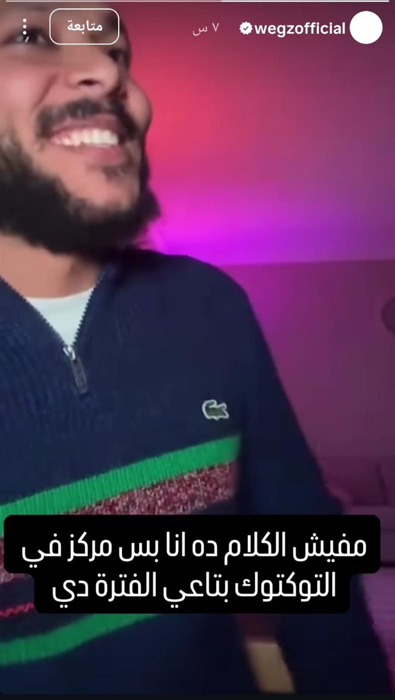 وأكد ويجز أنه لا صحة لتلك الأقاويل، ساخرًا قائلًا أنه يركز حاليًا على التوكتوك، وجاء ذلك من خلال استوري له عبر حسابه على إنستجرام، حيث كتب: "مفيش الكلام ده، أنا بس مركز في التيك توك بتاعي الفترة دي..".