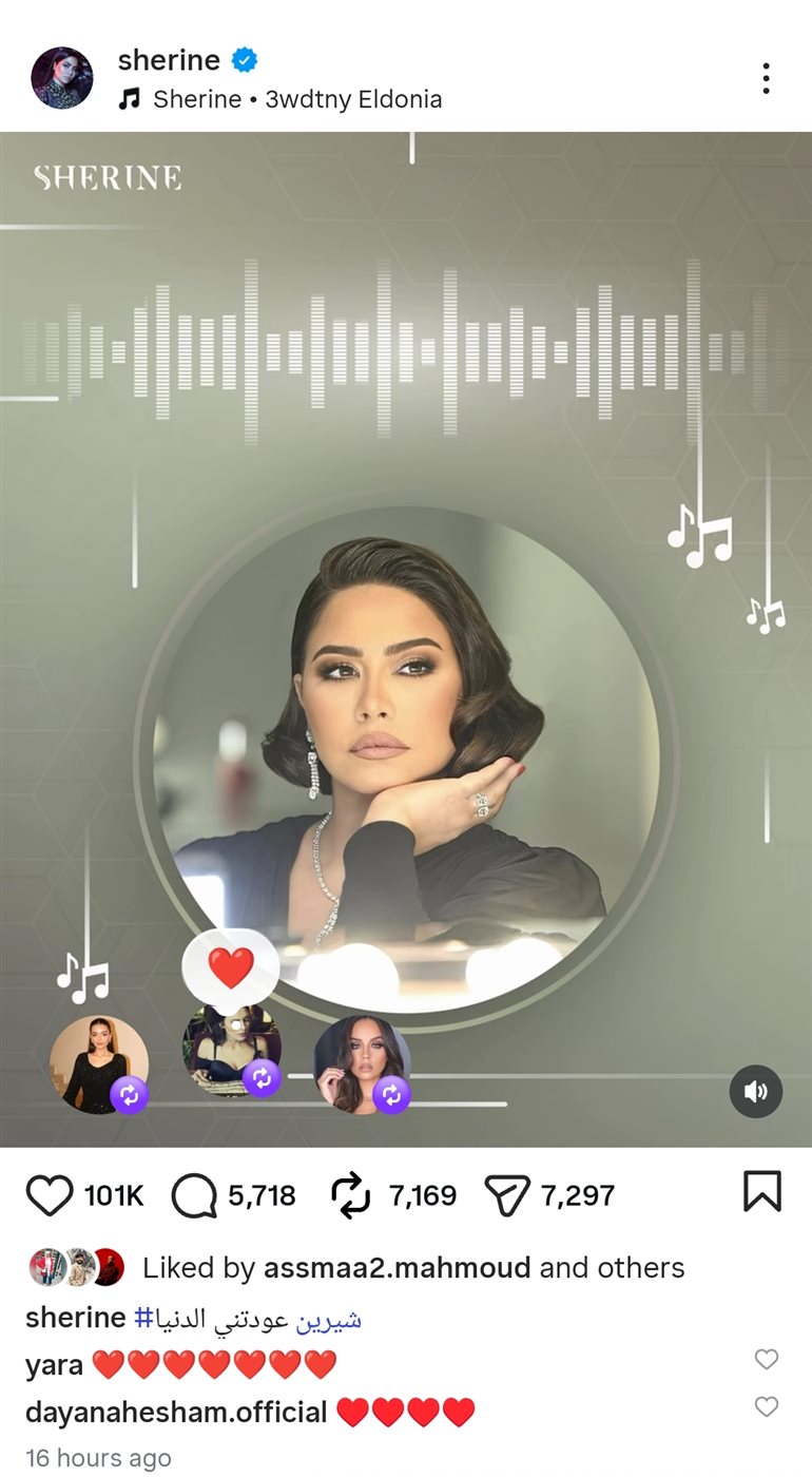 أثارت النجمة شيرين عبدالوهاب دهشة جمهورها بإعادة نشر أغنيتها الشهيرة «عودتني الدنيا»، بعد فترة غياب طويلة شهدت خلالها تكهنات واسعة حول حالتها الصحية والنفسية.