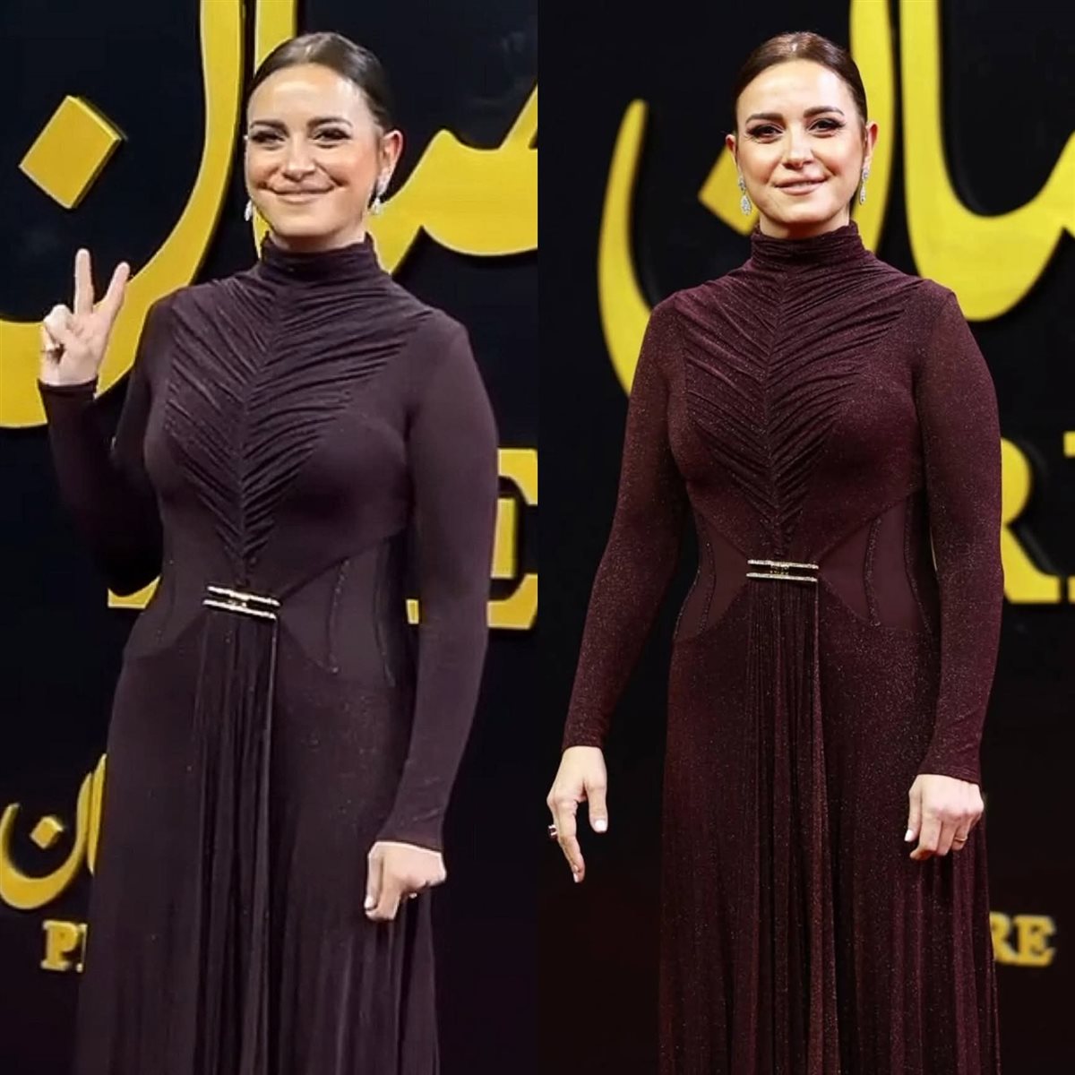 وبدت ريهام عبدالغفور بإطلالة ساحرة، مزجت بين الأنوثة والاحتشام في آن واحد بتوقيع أحدث صيحات الموضة، حيث أرتدت فستان طويل مجسم بأكمام طويلة، صمم الفستان بشكل جذاب من قماش ناعم باللون البني وتزينت ببعض المجوهرات الماسية لتزيد من فخامة إطلالتها.