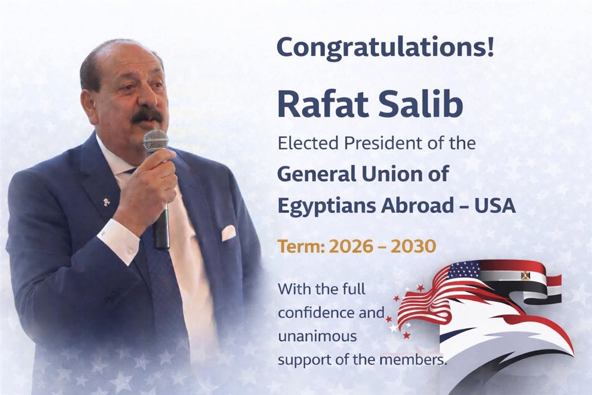 الاتحاد العام للمصريين في أمريكا يعلن انتخاب رأفت صليب رئيسًا للاتحاد لدورة 2026–2030 بالإجماع