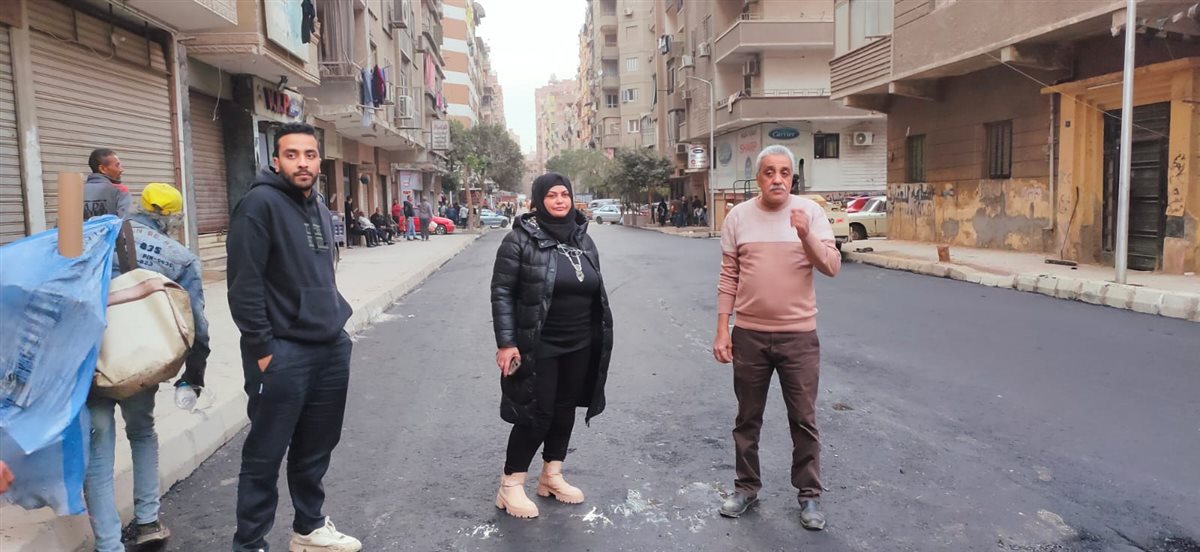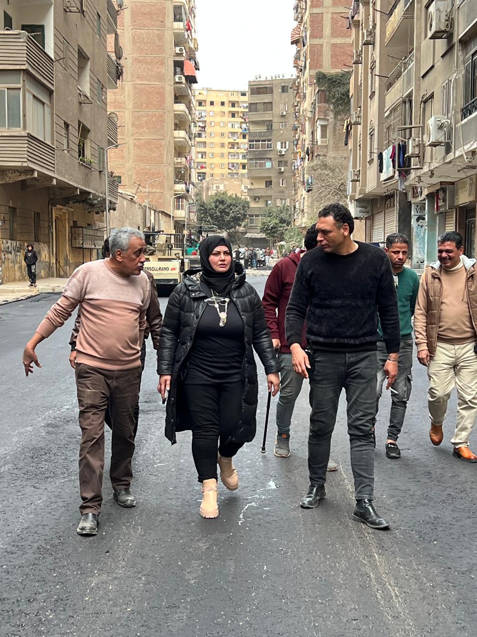 أمل فوزي.. تنفذ رصف 800 متر بشارعي قاسم والإمام بعين شمس