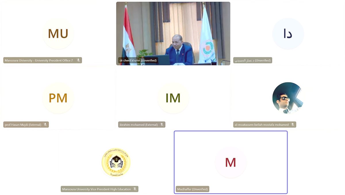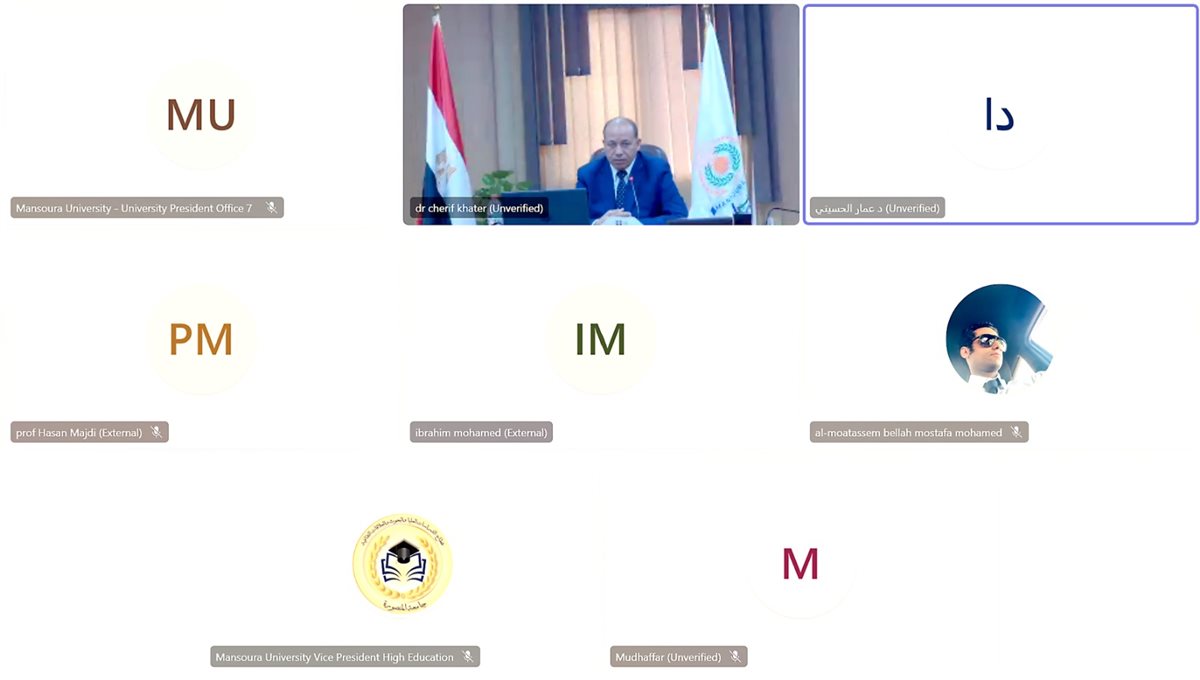 عقد الدكتور شريف خاطر، رئيس جامعة المنصورة، اجتماعًا افتراضيًا عبر تقنية Zoom Meeting مع الدكتور حسن شاكر مجدي، رئيس جامعة المستقبل العراقية..