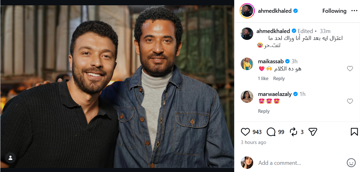 ونشر المخرج صورة تجمعه بعمرو سعد علي حسابه الرسمي علي انستجرام وعلق قائلًا: "اعتزال إيه بعد الشر أنا وراك لحد ما تنتحر".