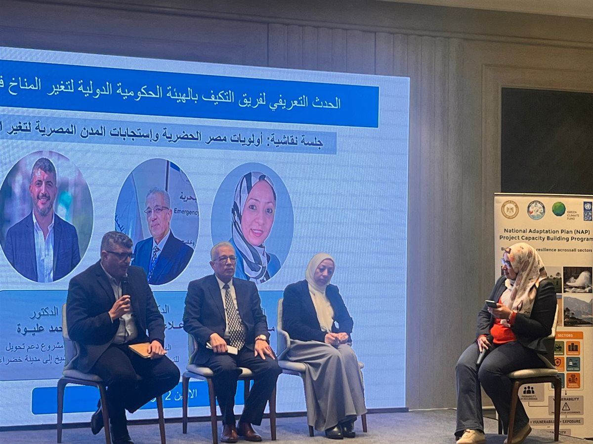 تحت رعاية الدكتورة منال عوض وزيرة التنمية المحلية والقائم بأعمال وزير البيئة، وضمن فعاليات الورشة التعريفية للهيئة الحكومية الدولية لتغير المناخ والتكيف والمخاطر ، الذي تنظمه وزارة البيئة من خلال مشروع إعداد الخطة الوطنية للتكيف في مصر بتمويل من برنامج الأمم المتحدة الإنمائي UNDP وصندوق اللمناخ الأخضر GCF، تم تنظيم جلسة نقاشية حول أولويات مصر الحضرية واستجابات المدن المصرية لتغير المناخ المدن.