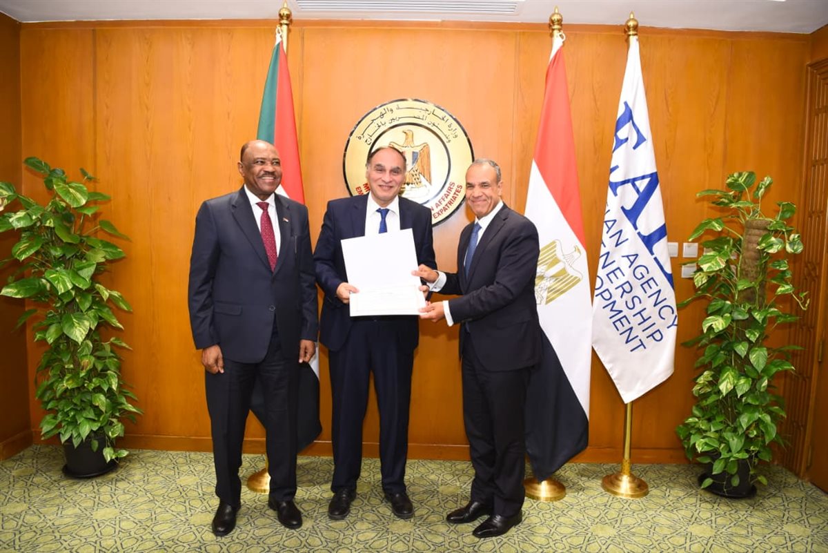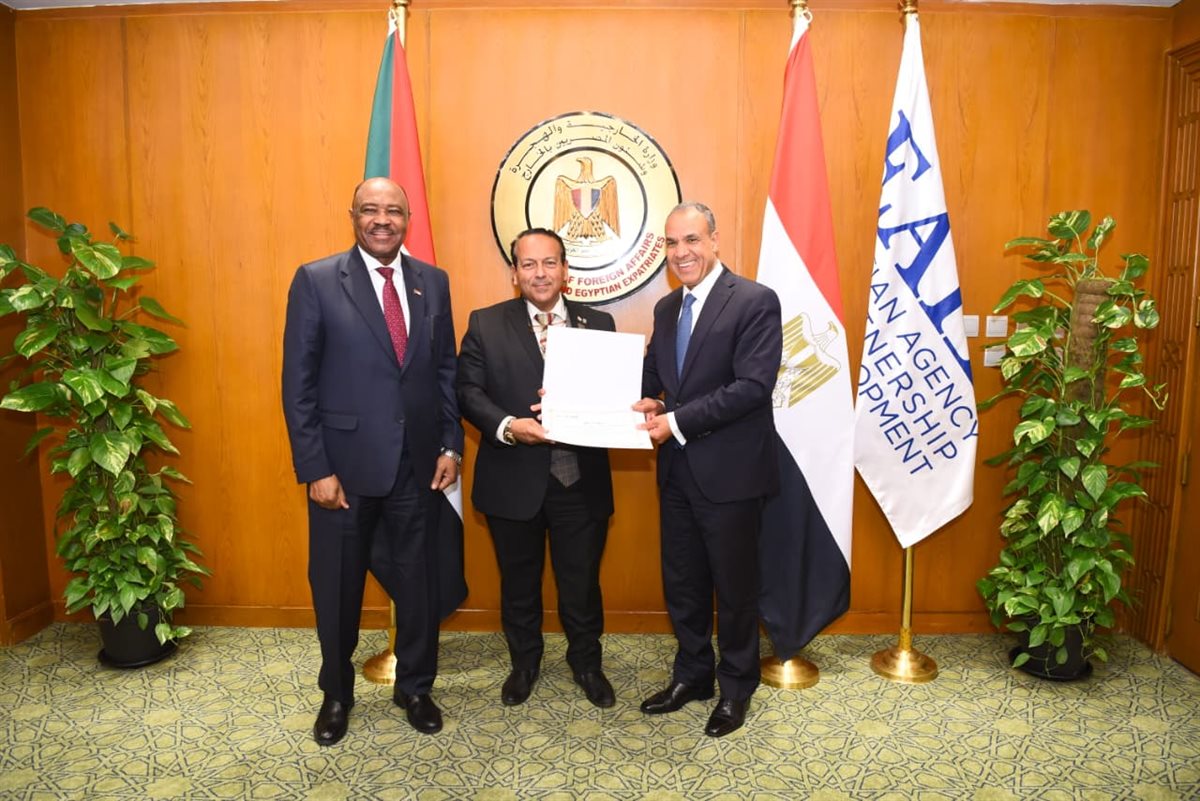 على هامش استضافة د. بدر عبد العاطي، وزير الخارجية والهجرة وشئون المصريين بالخارج، للسيد محي الدين سالم، وزير خارجية جمهورية السودان، شارك الوزيران في الاحتفالية التي نظمتها الوكالة المصرية للشراكة من أجل التنمية يوم الثلاثاء ٣ فبراير، بمقر وزارة الخارجية لتكريم أعضاء الفريق الطبي المصري الذي شارك في القافلة الطبية المصرية التي قامت بزيارة إلى السودان الشقيق خلال الفترة من ٢٠ إلى ٢٧ ديسمبر ٢٠٢٥، وذلك تقديرًا لجهودهم الإنسانية والمهنية في دعم القطاع الصحي السوداني.
