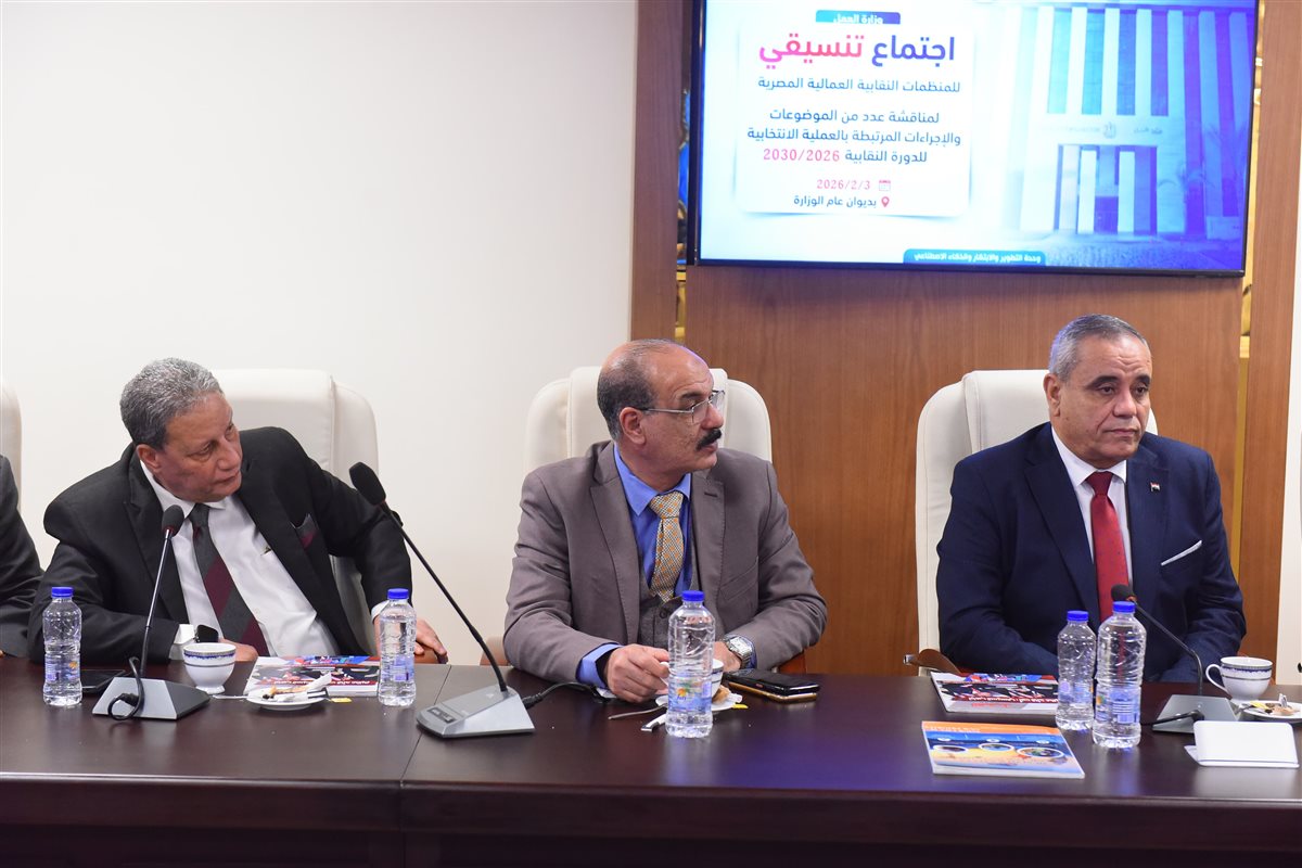 حضر الاجتماع وفاء أسامة، ممثل منظمة العمل الدولية بمكتب القاهرة ومديرة الأنشطة العمالية، إلى جانب قيادات الحركة النقابية والعمالية وممثلي مختلف المنظمات العمالية، حيث جرى بحث عدد من الموضوعات المتعلقة بتنظيم العملية الانتخابية، وآليات ضمان نزاهتها وشفافيتها وفقاً للمعايير الدولية.