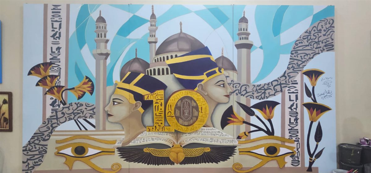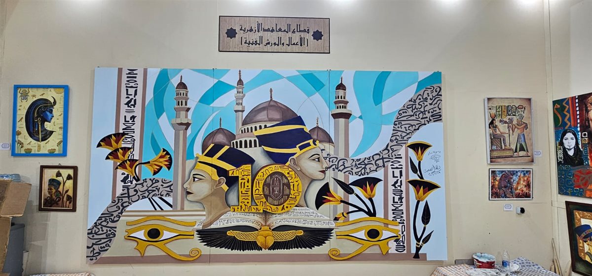 الجدارية تنفذ بأيدي ٥ فنانين مبدعين من رئاسة قطاع المعاهد الأزهرية