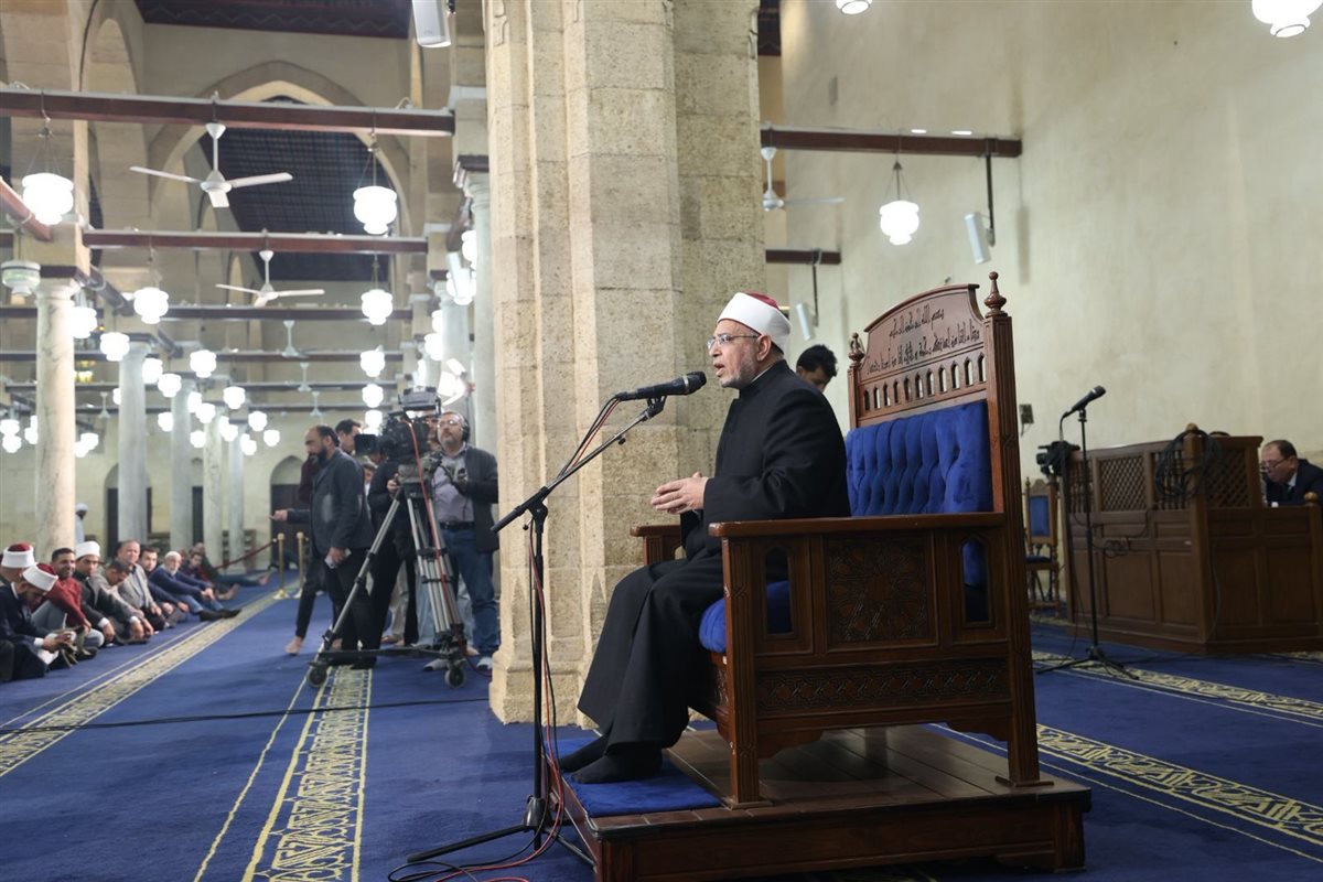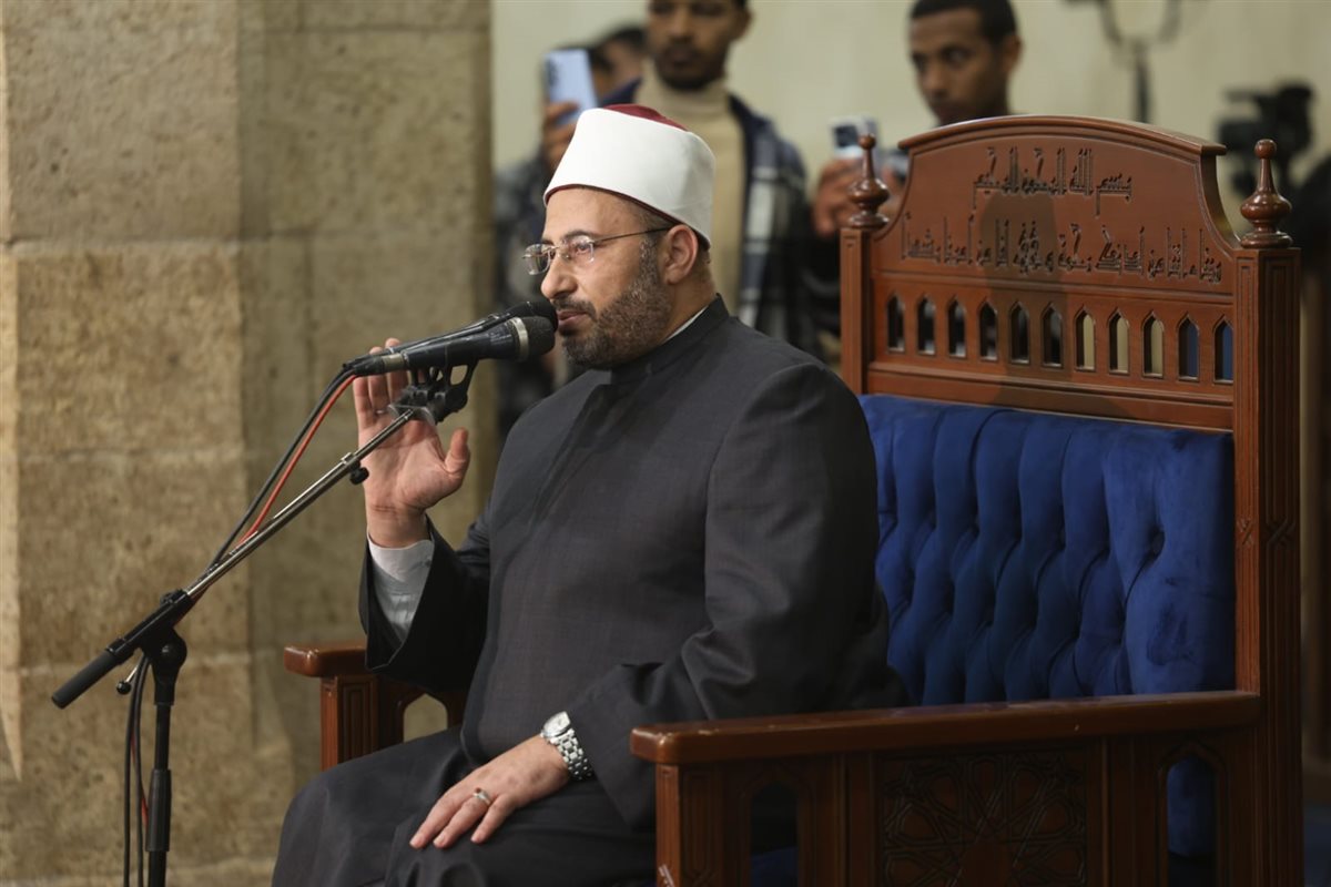 وتابع أننا نستلهم في هذه المناسبة العظيمة، نستلهم من رسول الله ﷺ كيف نواجه الصعاب والاعتراضات بصبر وثبات، فنحن اليوم نعيش في عصر يعج بالفتن، وعلينا أن نتمسك بمبادئنا كما تمسك الصحابة رضوان الله عليهم بعد تحويل القبلة، فاستجابوا بأرواحهم وأجسادهم لهذه التوجيهات الإلهية مؤكدًا فضيلته أن هذا الحدث التاريخي لا يقتصر على مجرد ذكرى، بل هو درس يجب أن نعيش به يومًا بعد يوم، وأنه مهما اشتد الجدل حول قضايا ديننا، يجب أن نثبت على هويتنا ونظل متمسكين بديننا وعقيدتنا الصحيحة.