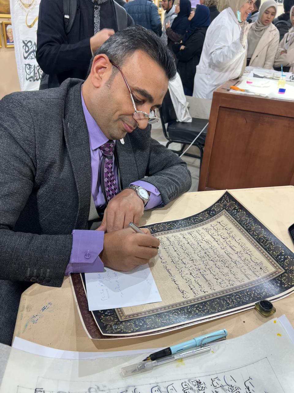 كما شهد ركن الخط العربي طوابير ممتدة يوميًا، حيث أقبل الزوار على كتابة أسمائهم وأسماء ذويهم بخطوط عربية بديعة، في مشهد تفاعلي عكس جماليات الخط العربي وارتباط الجمهور به، وبلغ عدد الكروت المكتوب عليها نحو 20 ألف كارت.