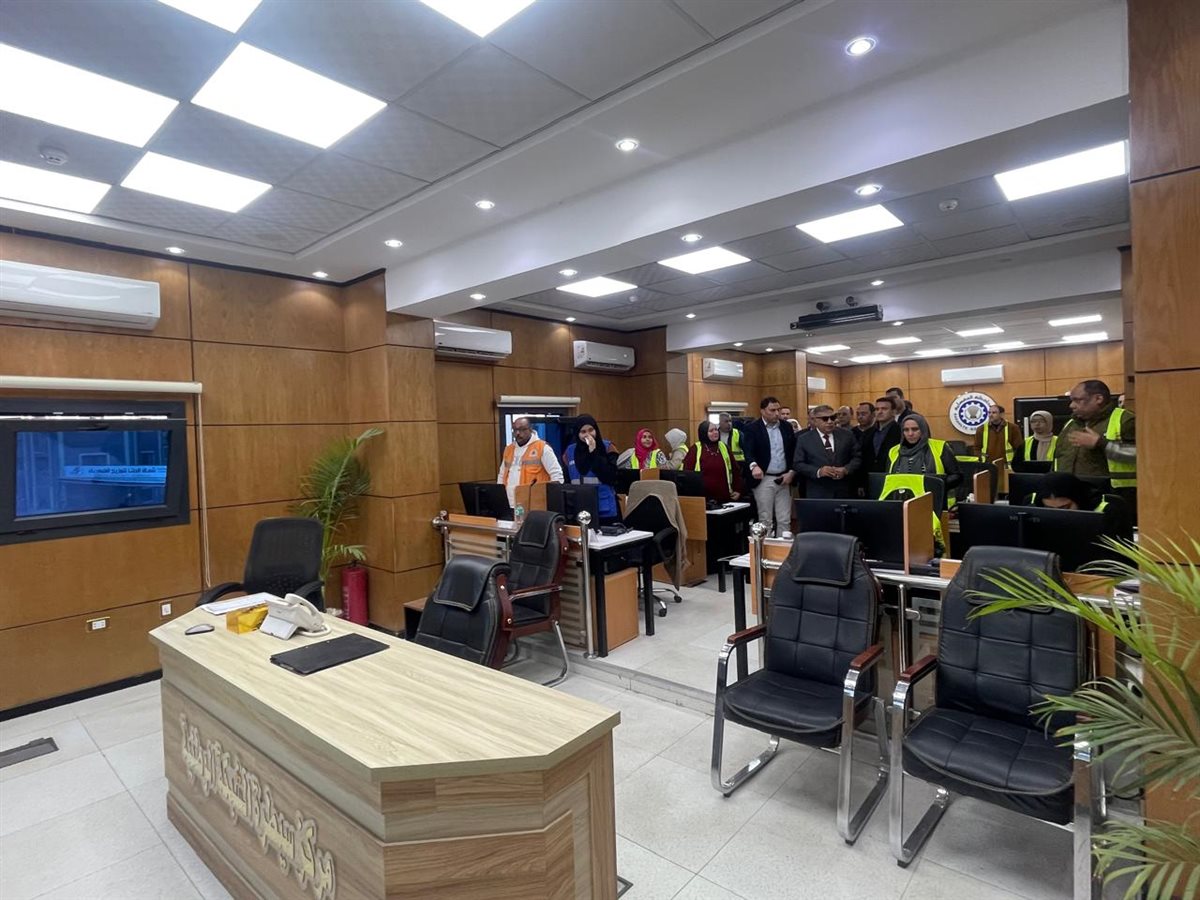 رافق المحافظ اللواء عماد عبد الله السكرتير العام، واللواء عماد الدكروري السكرتير العام المساعد للمحافظة، واللواء محمد حواس مدير مكتب المحافظ، واللواء عمرو عبد الرحمن مدير أمن الديوان، والأستاذ أحمد حمدي مدير الشبكة الوطنية للطوارئ والسلامة، والمهندس السيد زين مدير إدارة شبكات المرافق.