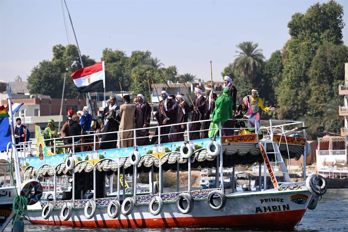 عروض الفنون الشعبية تزين نهر النيل في ديفيليه مهرجان أسوان الدولي الـ13