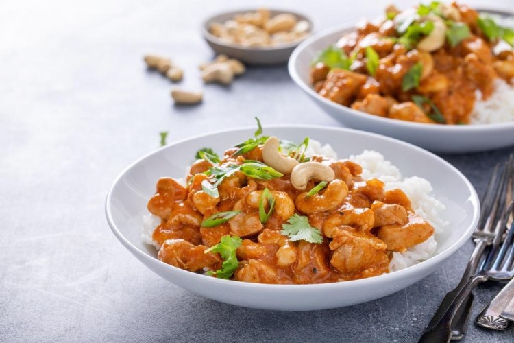 ضعي الدجاج بالكاجو في طبق التقديم، وقدميه ساخناً.