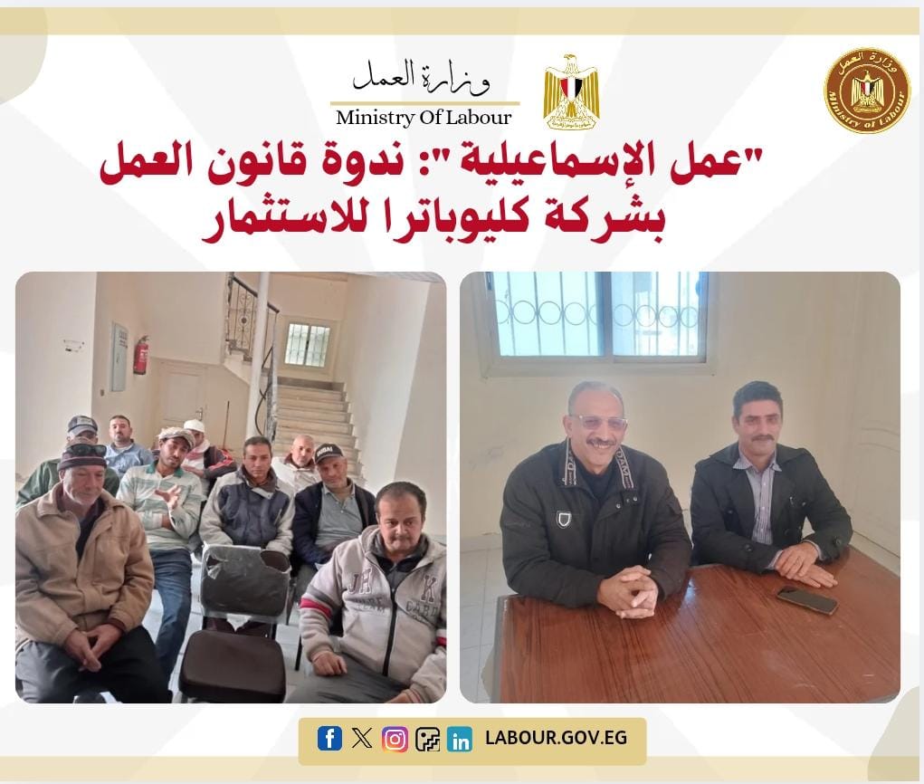 عمل الإسماعيلية: ندوة قانون العمل بشركة كليوباترا للاستثمار