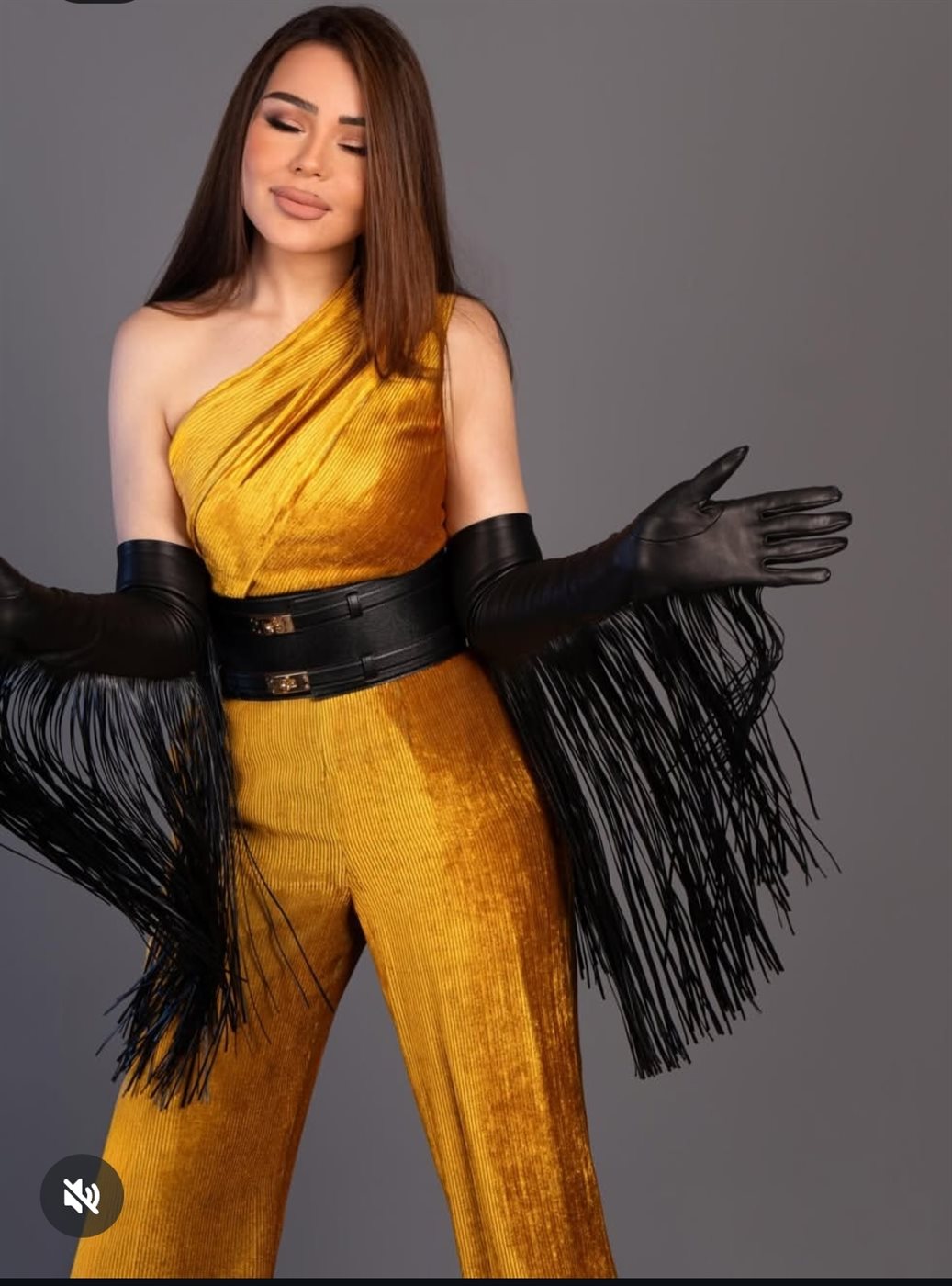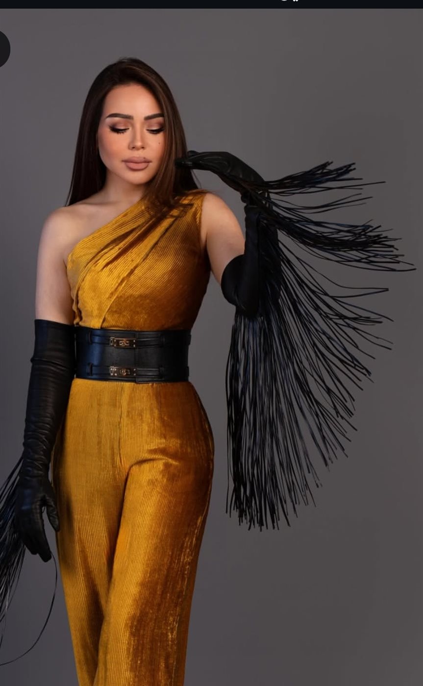 وبدت أسما إبراهيم بإطلالة كاجوال جذابة تتناغم مع ذوقها الجرئ، حيث أرتدت جمبسوت أنيق التصميم صمم من قماش المخمل باللون الخردلي وعكست نحافة خصرها بحزام عريض صمم من الجلد ونسقت معه جوانتي صمم من الجلد المزين بالشراشيب الناعمة.
