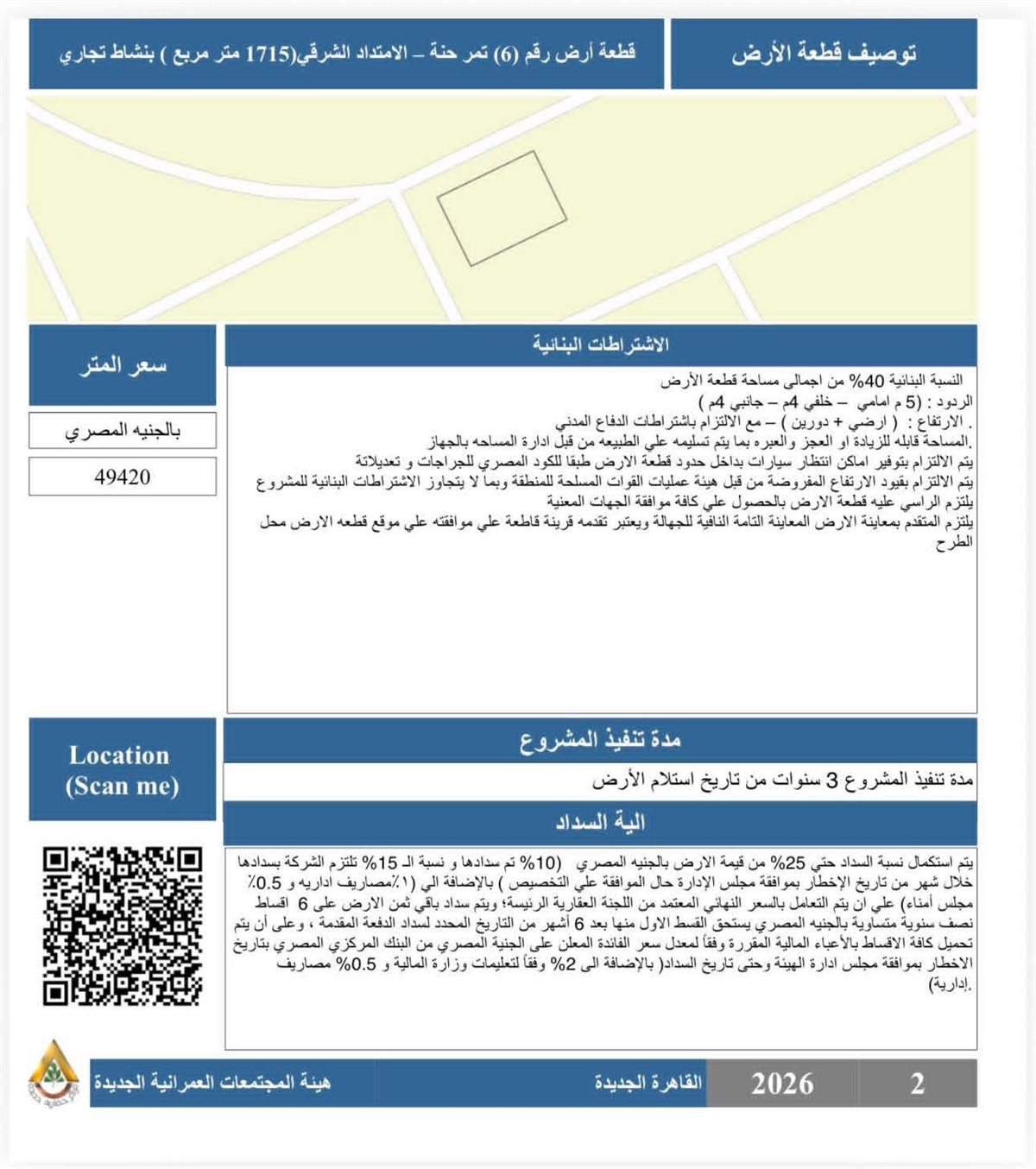 السعر: 49,420 جنيهًا للمتر
