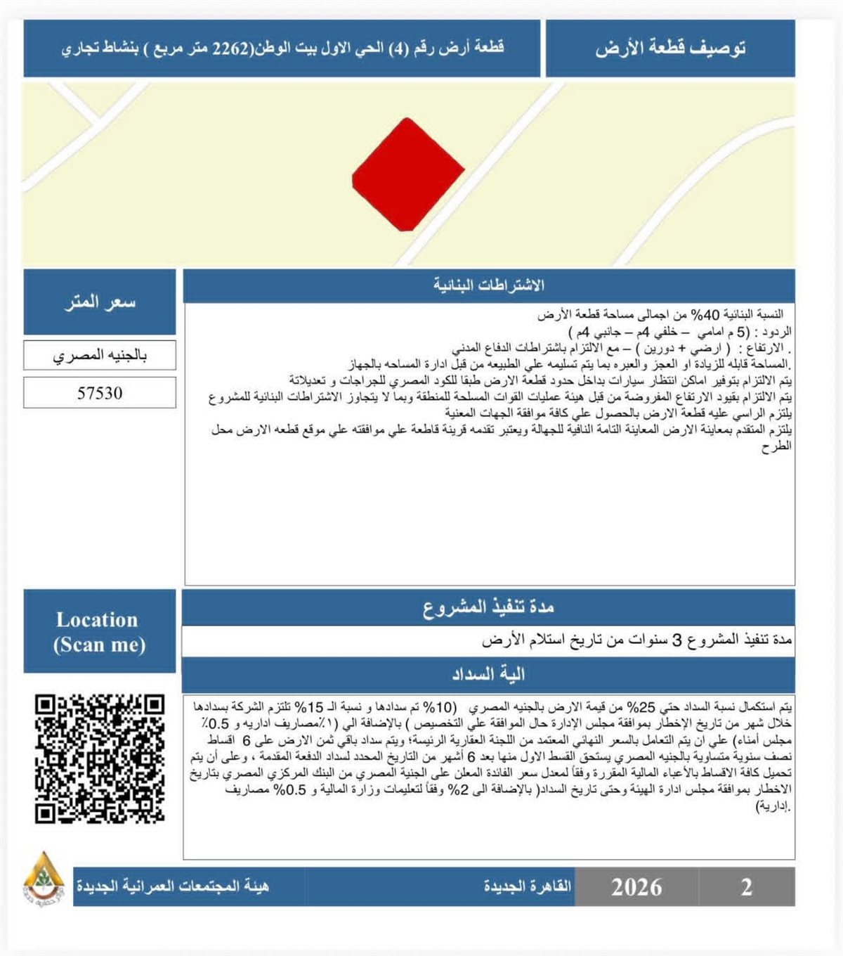 السعر: 57,530 جنيهًا للمتر