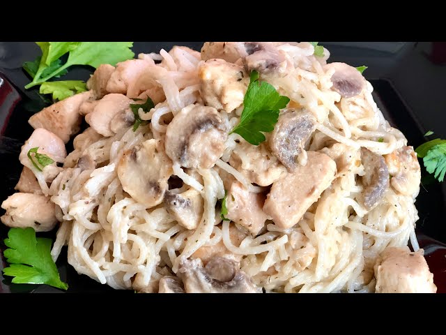 طريقة تحضير مكرونة بالكريمة والمشروم والدجاج