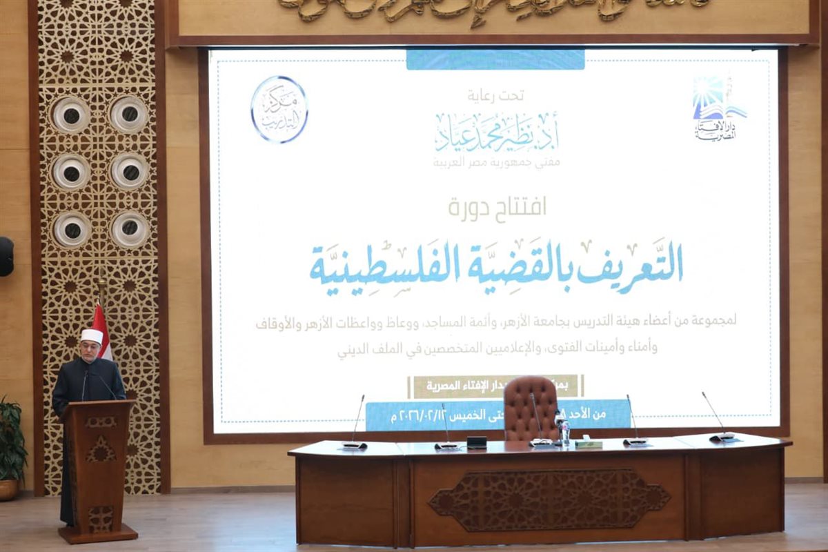وأضاف المفتي أن هذه الدورة تستهدف تأصيلًا علميًّا وشرعيًّا للقضية الفلسطينية يحفظها من التسطيح أو الاستغلال ويعمل على تفكيك الخطابات المضللة التي تسعى إلى تزييف الوعي أو تبرير العدوان، كما تسعى إلى بناء فهم شامل لأبعاد القضية الدينية والتاريخية والقانونية والإنسانية، مع التأكيد على مركزية القدس والمسجد الأقصى في الوجدان الإسلامي في إطار علمي منضبط يراعي المقاصد الشرعية ويحفظ الاستقرار المجتمعي،  وأن التعامل مع القضية الفلسطينية يجب أن يكون تعاملًا شرعيًّا منضبطًا يرفض الظلم والاعتداء وتعاملًا وطنيًّا مسؤولًا يراعي مصالح الأوطان ويحفظ أمنها، إضافة إلى بُعد إنساني أخلاقي ينحاز للمظلوم ويرفض صور العقوبات الجماعية، مبينًا أن هذه الدورة تمثل حاجز وقاية فكريًّا لحماية الوعي الجمعي من محاولات الاستغلال أو خلط الدين بالفوضى أو توظيف المأساة لإثارة الاضطراب.