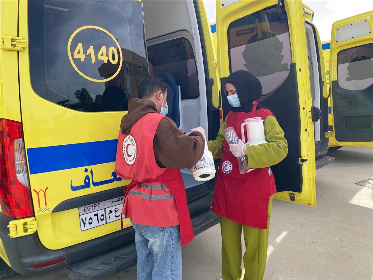 وعلى معبر رفح من الجانب المصري، يواصل الهلال الأحمر المصري جهوده الإنسانية، في استقبال وتوديع الدفعة السادسة من الجرحى والمرضى والمصابين الفلسطينيين الوافدين والمغادرين، ومرافقتهم في إنهاء إجراءات العبور.