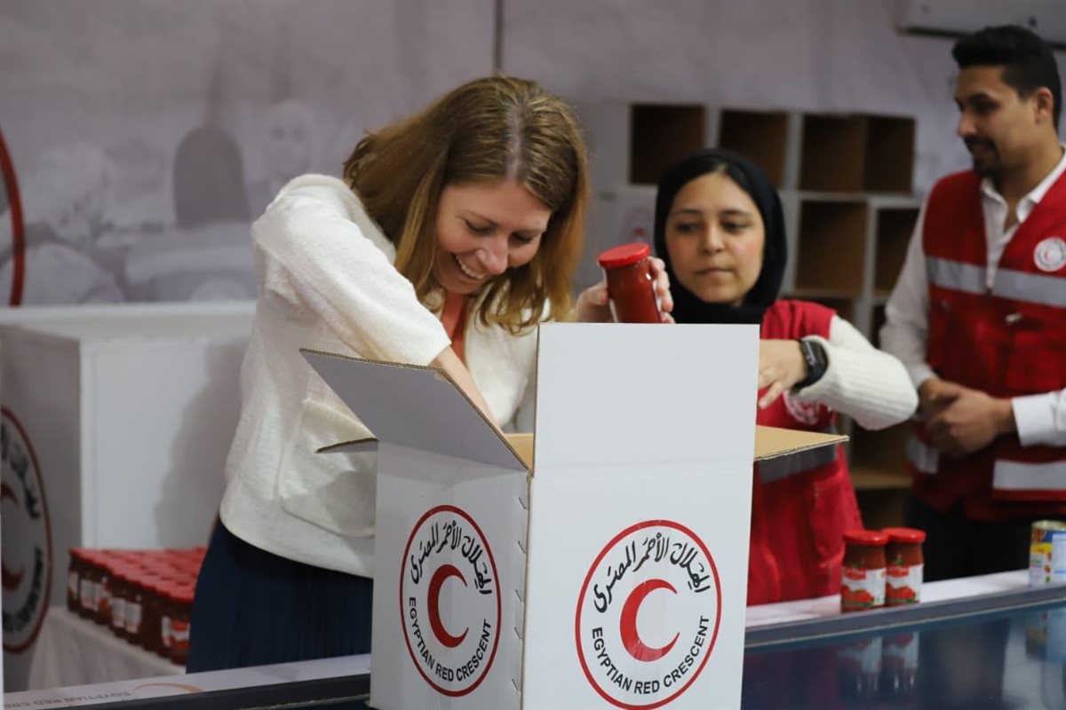 وفي نهاية جولتها، تفقدت الوزيرة السويدية مركز تعبئة وتجهيز المساعدات الإنسانية للإطلاع على آلية تجهيز السلال الغذائية، وشاركت في تعبئة المساعدات إلى غزة، باعثة رسالة دعم تحمل توقعيها إلى أهالي القطاع.