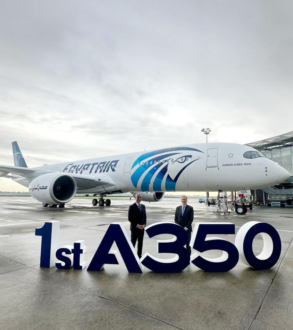 ومن ناحية أخرى، صرّح الطيار أحمد عادل، رئيس مجلس الإدارة والعضو المنتدب التنفيذي للشركة القابضة لمصر للطيران، قائلًا: «يمثل انضمام طائرة A350-900 إلى أسطول مصر للطيران خطوة حيوية مهمة ضمن خطة تحديث الأسطول، لما تتمتع به هذه الطائرات من كفاءة تشغيلية عالية في استهلاك الوقود، ومدى طيران ممتد، وقدرات متقدمة على تحقيق الاستغلال الأمثل لشبكة التشغيل طويلة المدى، بما يسهم في زيادة السعة المقعدية على الخطوط ذات الطلب المرتفع وفتح أسواق جديدة».