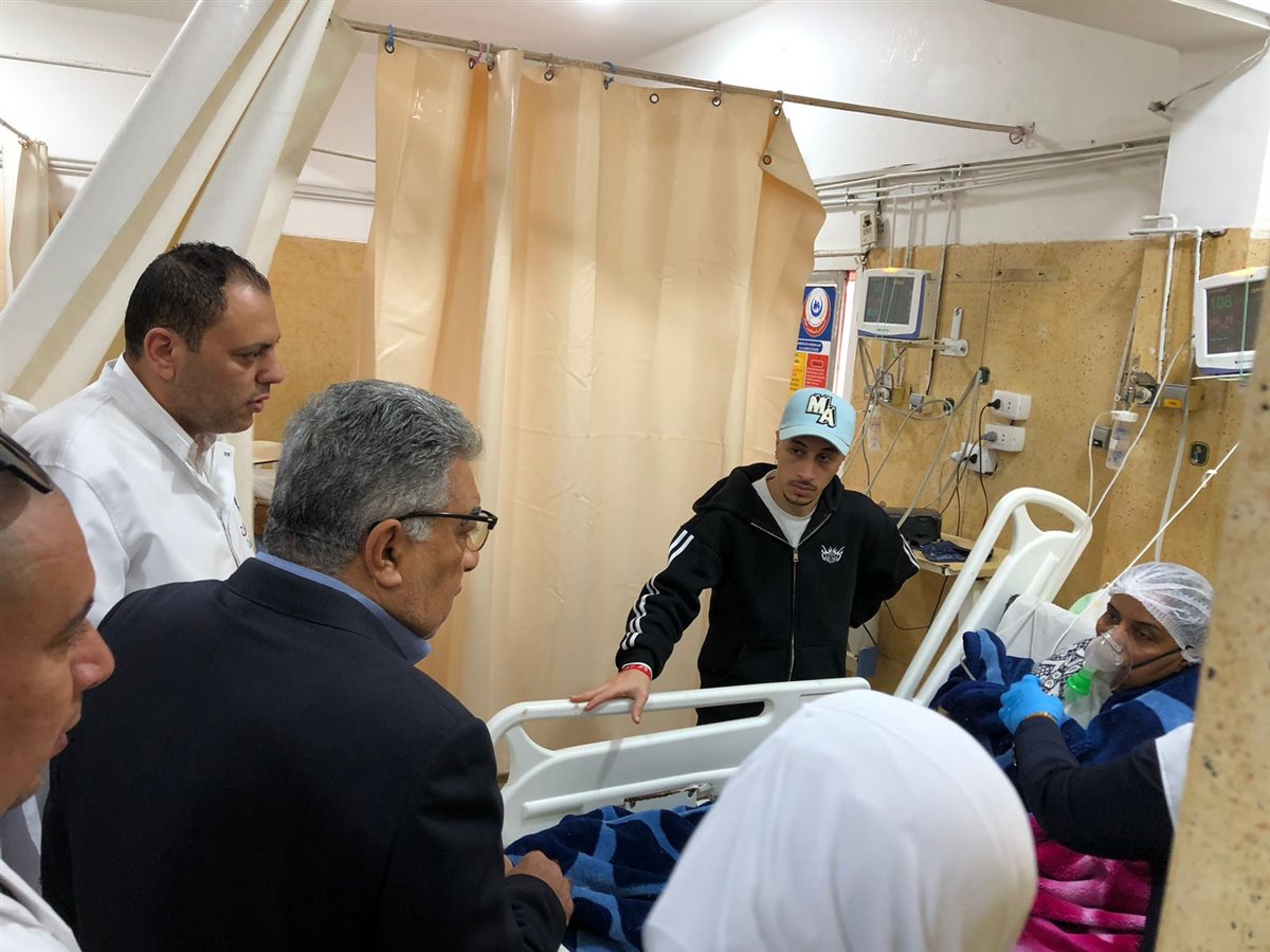 استقبل المستشفى المصابين شوقي عبد اللطيف أحمد 47 عاما وأحمد عبد القادر مأمون 41 عاما ومنى أشرف عبد الموجود عبد الخالق 19 عاما وشقيقتها إيمان أشرف عبد الموجود عبد الخالق 17 عاما وعايدة مصطفى طلبة 43 عاما، بالإضافة إلى محمد محمود رضا 24 عاما فني تمريض بالمستشفى، حيث تباينت إصاباتهم بين كدمات متفرقة واشتباه ما بعد الارتجاج وانخفاض في درجة الوعي استلزمت رعاية طبية فائقة.