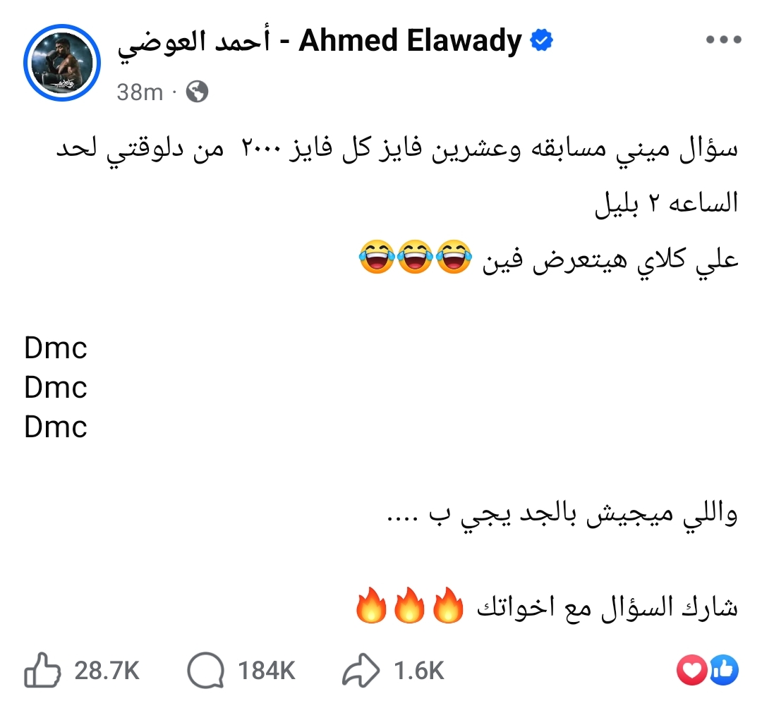 أحمد العوضي يعلن عن مسابقة ضخمة.. 2000 جنيه لكل فائز (ما هو السؤال؟)