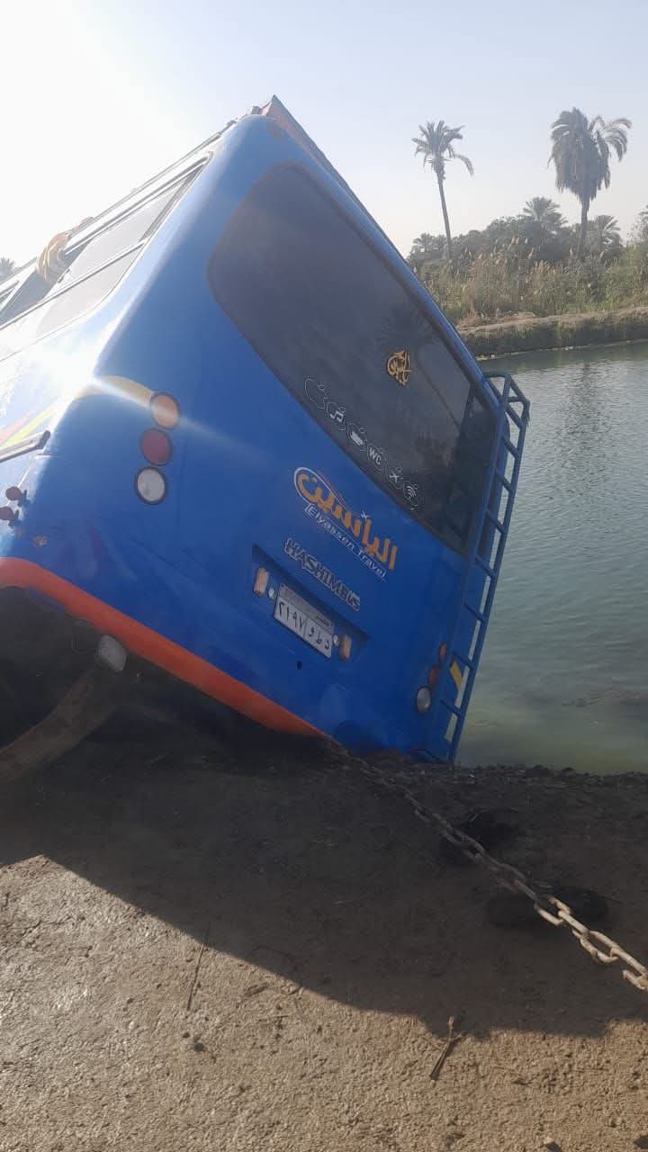 ميني باص السويس يصارع الغرق في الترعة والعناية الإلهية تنقذ الركاب من الموت