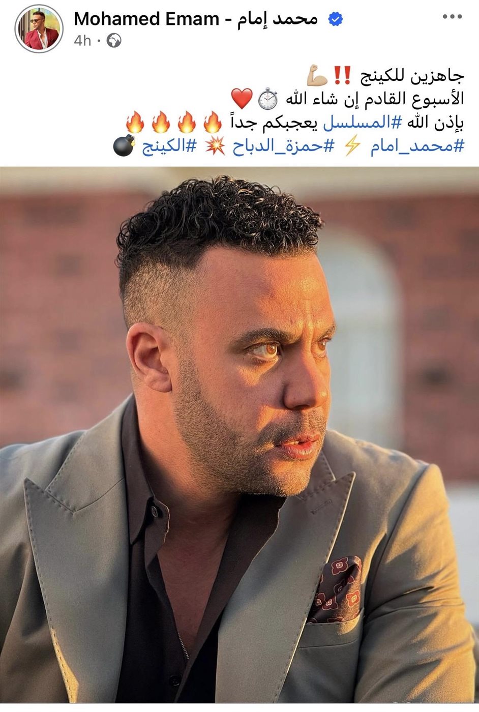 ونشر محمد إمام صورة جديدة من كواليس تصوير مسلسل "الكينج" وعلق عليها قائلًا: «جاهزين للكينج الأسبوع القادم إن شاء الله، بإذن الله المسلسل يعجبكم جدًا».