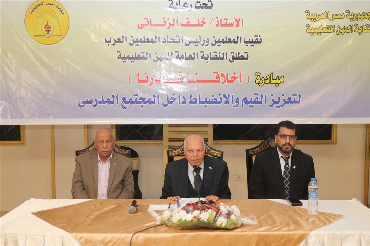وأضاف خلف الزناتي نقيب المعلمين ورئيس اتحاد المعلمين العرب، فى كلمته قائلا : إن هدفنا الأسمى هو تحويل الأخلاق من "شعارات نظرية" في الكتب، إلى "سلوك عملي" يمارسه الطالب في المدرسة والشارع والمنزل، إننا لا نسعى فقط لخفض السلوكيات السلبية، بل لبناء جيل يعتز بهويته، يحترم الآخر، ويملك مهارات التواصل الإيجابي التي تؤهله لخدمة وطنه.