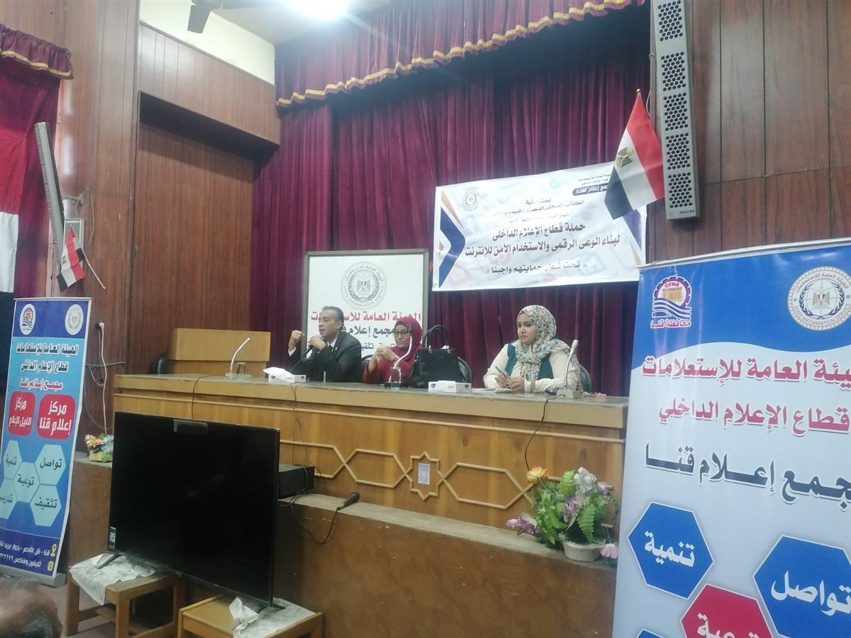 شهد مجمع إعلام قنا انطلاق فعاليات الندوة التوعوية المكثفة التي حملت عنوان مواقع التواصل الاجتماعي بين الحرية والمسئولية وذلك في اطار تحركات قطاع الإعلام الداخلي الرامية الى ترسيخ مفاهيم الاستخدام الامن للشبكة العنكبوتية تحت قيادة الدكتور أحمد يحي رئيس قطاع الإعلام الداخلي بالهيئة العامة للاستعلامات ضمن المبادرة الوطنية حمايتهم واجبنا التي تستهدف حماية العقول من التضليل الرقمي.