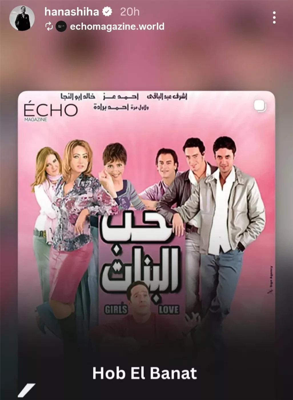 أعادت الفنانة هنا شيحة إحياء ذكريات فيلم «حب البنات» بالتزامن مع الاحتفال بعيد الحب ومرور 22 عامًا على عرض الفيلم، حيث شاركت جمهورها عبر وسائل التواصل الاجتماعي ببوستر العمل الذي جمع أبطاله في صورة واحدة.