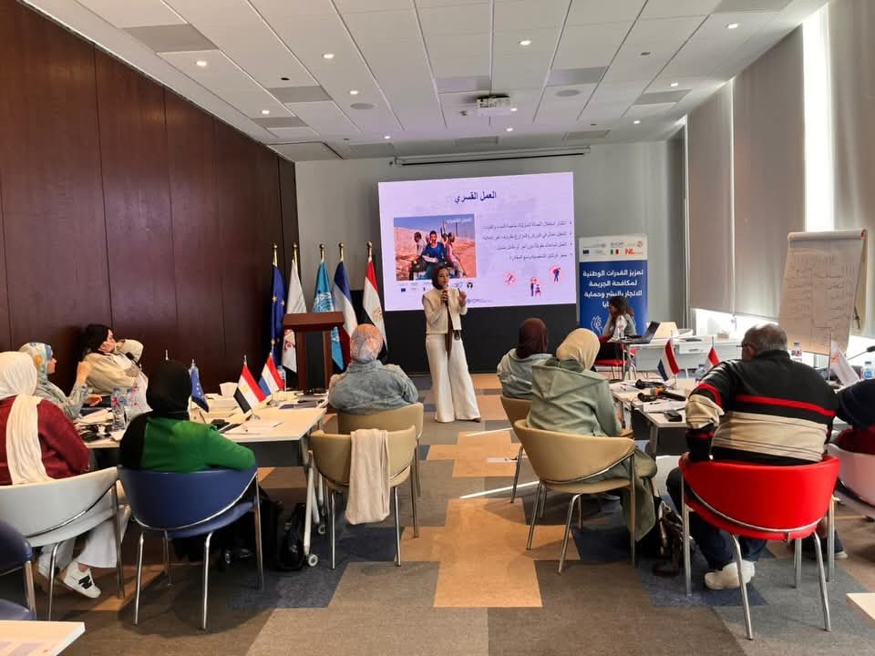واستهدفت الورشة دعم الكوادر العاملة بدور الرعاية من خلال استعراض الإطار القانوني الوطني والدولي المنظم لمكافحة الاتجار بالبشر وتهريب المهاجرين، والتعريف بالآلية الوطنية للإحالة، إلى جانب التدريب على مبادئ الرعاية المراعية للصدمات، وإدارة الحالة، وتقديم الدعم النفسي والاجتماعي.