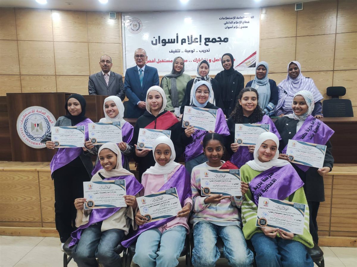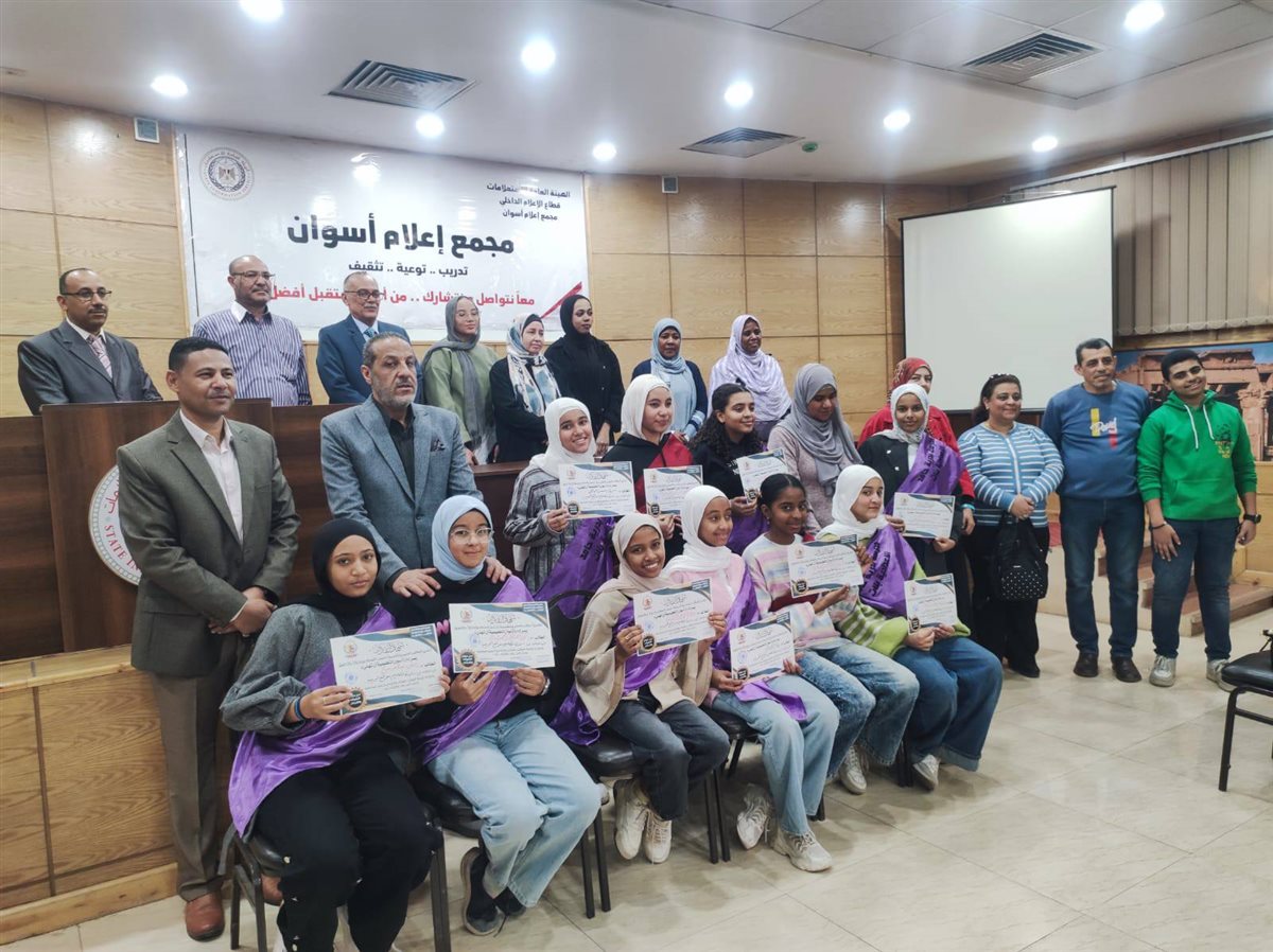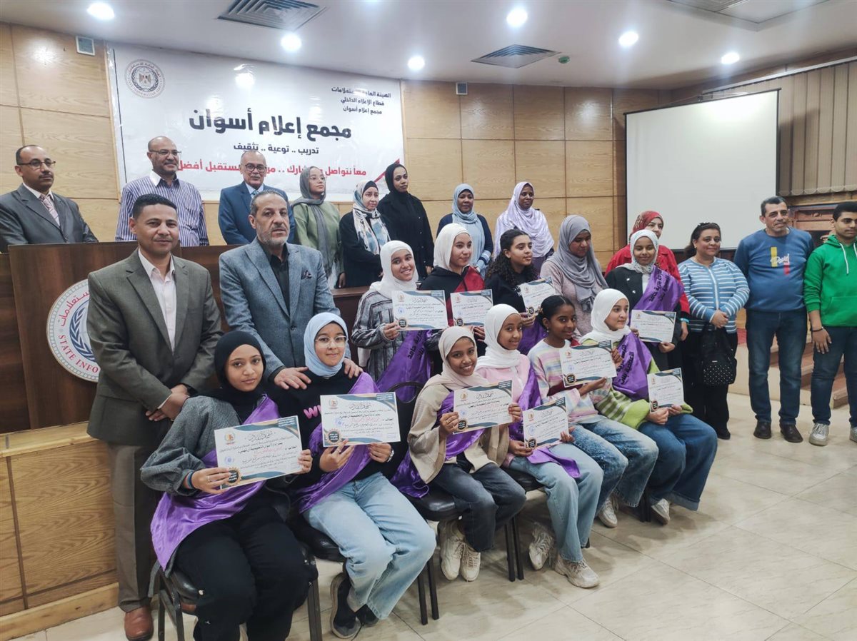 نظم مجمع إعلام أسوان احتفالية كبرى شهدت تكريم كوكبة من الطلاب المتفوقين الذين اجتازوا بنجاح دورات تدريبية متخصصة في مجالات تكنولوجيا المعلومات وتصميم المواقع الإلكترونية بالتعاون مع الهيئة العامة للاستعلامات