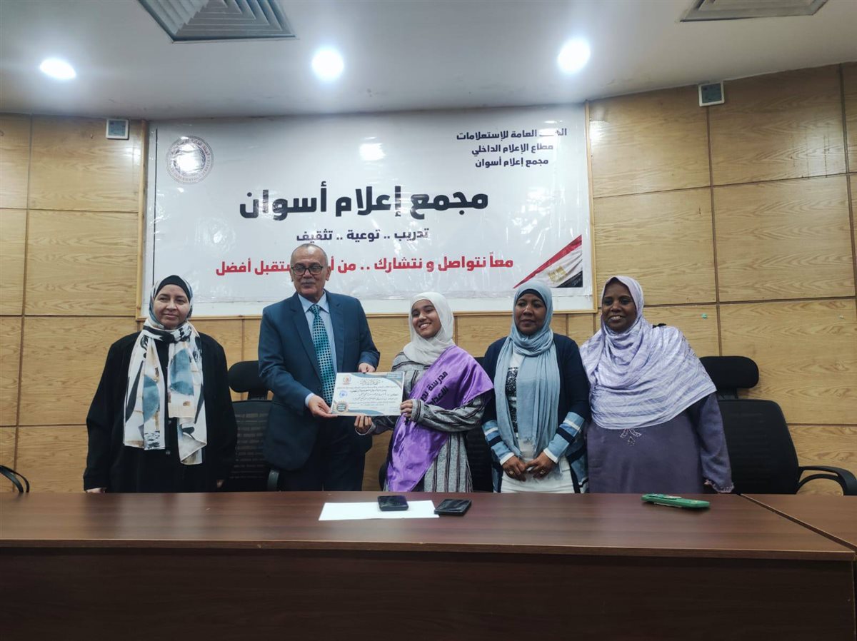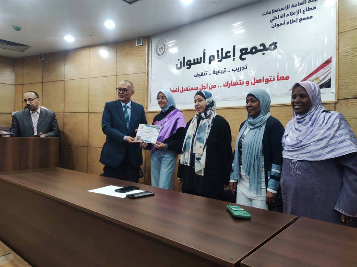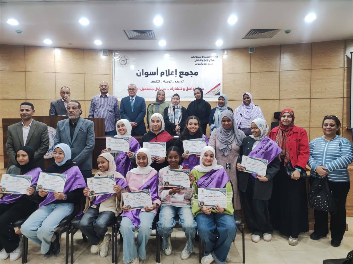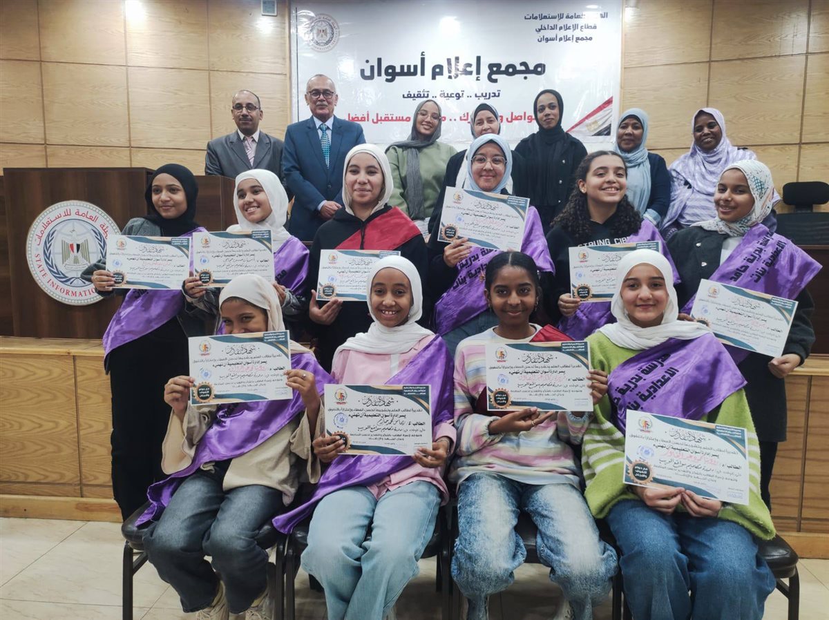 نظم مجمع إعلام أسوان احتفالية كبرى شهدت تكريم كوكبة من الطلاب المتفوقين الذين اجتازوا بنجاح دورات تدريبية متخصصة في مجالات تكنولوجيا المعلومات وتصميم المواقع الإلكترونية بالتعاون مع الهيئة العامة للاستعلامات