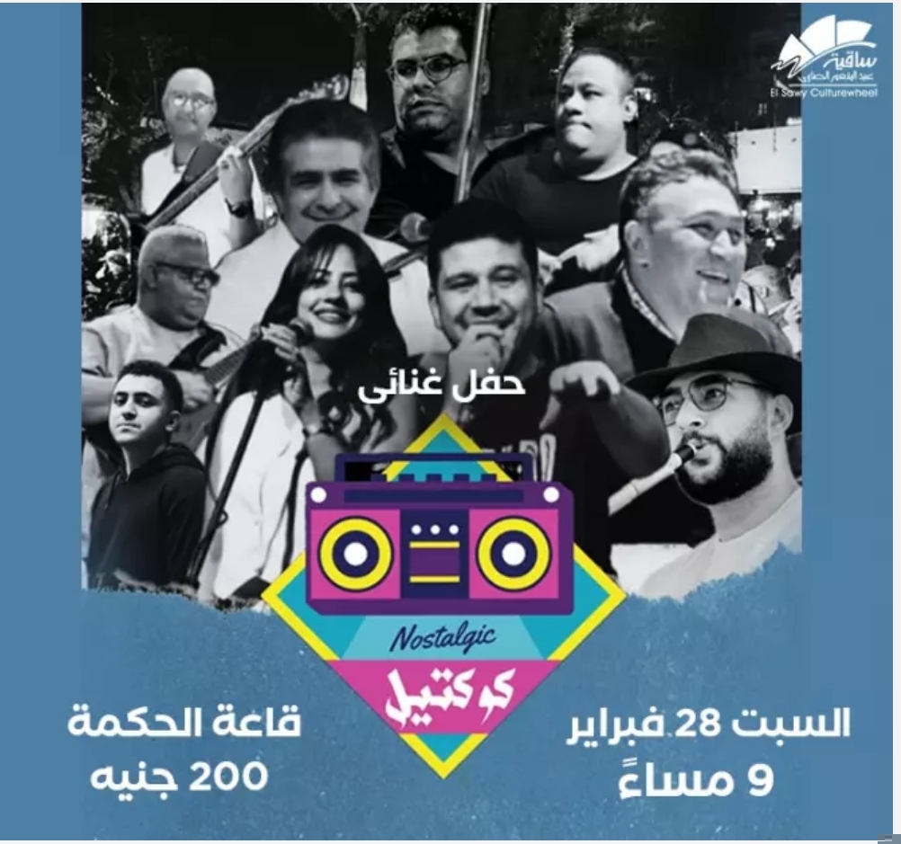 تستضيف ساقية عبد المنعم الصاوي، على خشبة مسرح الحكمة حفل غنائي لفرقة كوكتيل، وذلك يوم السبت 28 فبراير الجاري، في تمام الساعة التاسعة مساءً بقاعة الحكمة، بسعر تذكرة 200 جنيه.
