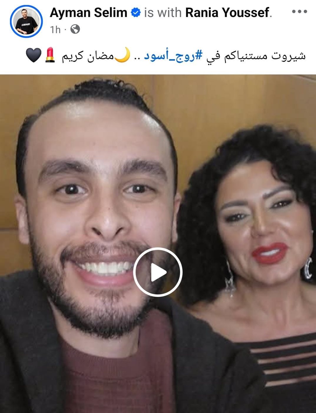نشر المؤلف أيمن سليم فيديو على صفحاته على السوشيال ميديا يجمعه بالنجمة رانيا يوسف من داخل كواليس تصوير مسلسل روج أسود المقرر عرضه في السباق الرمضاني.