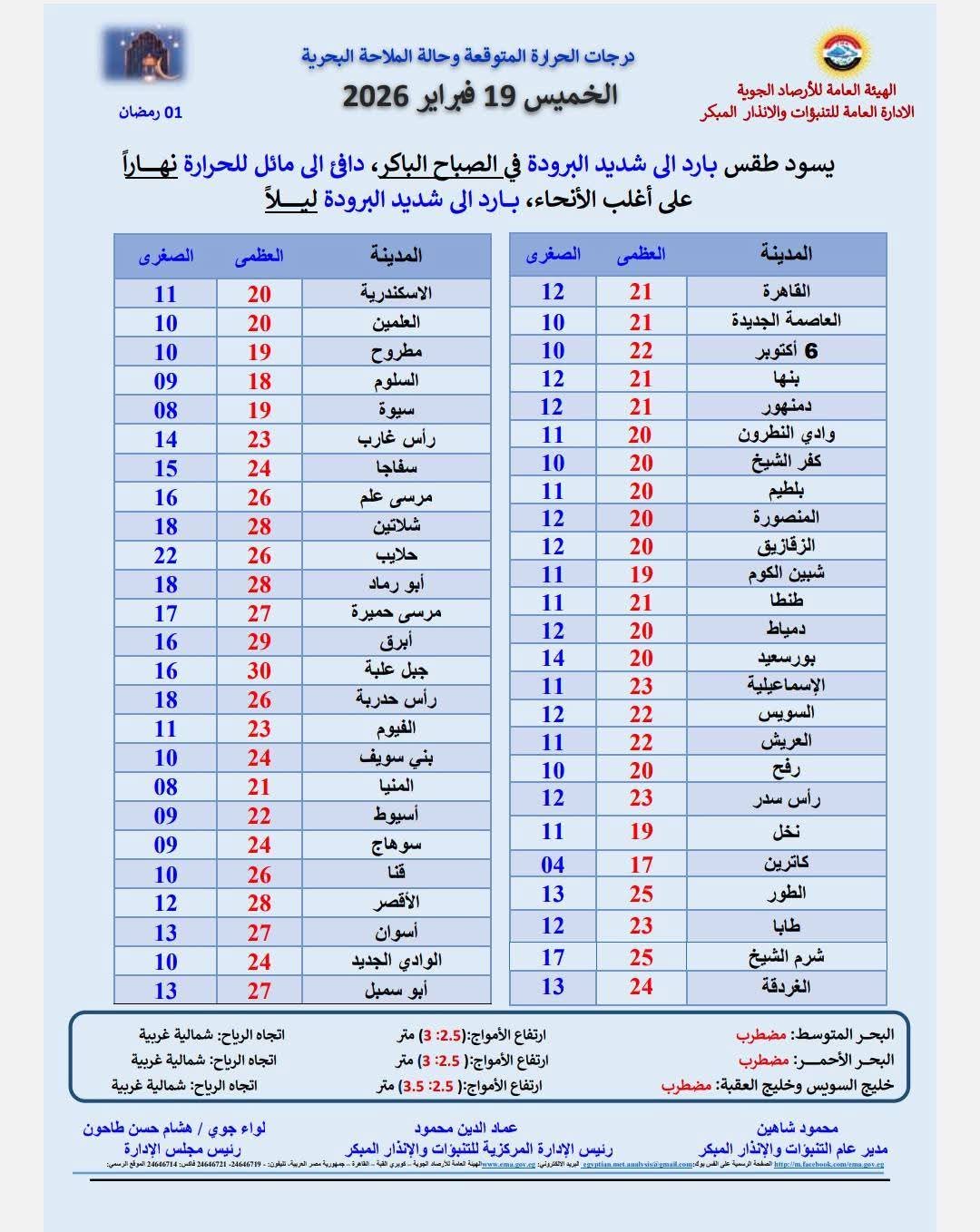 درجات الحرارة اليوم 1 رمضان - 19 فبراير