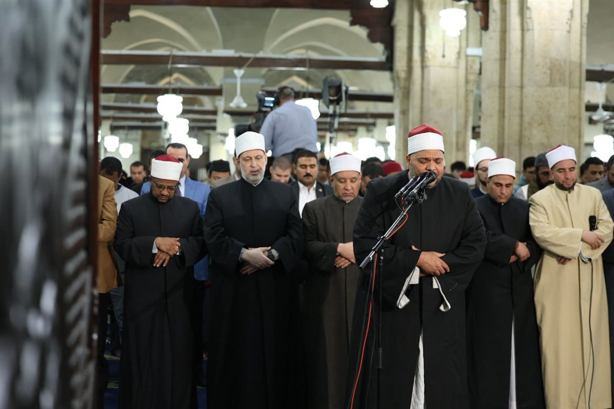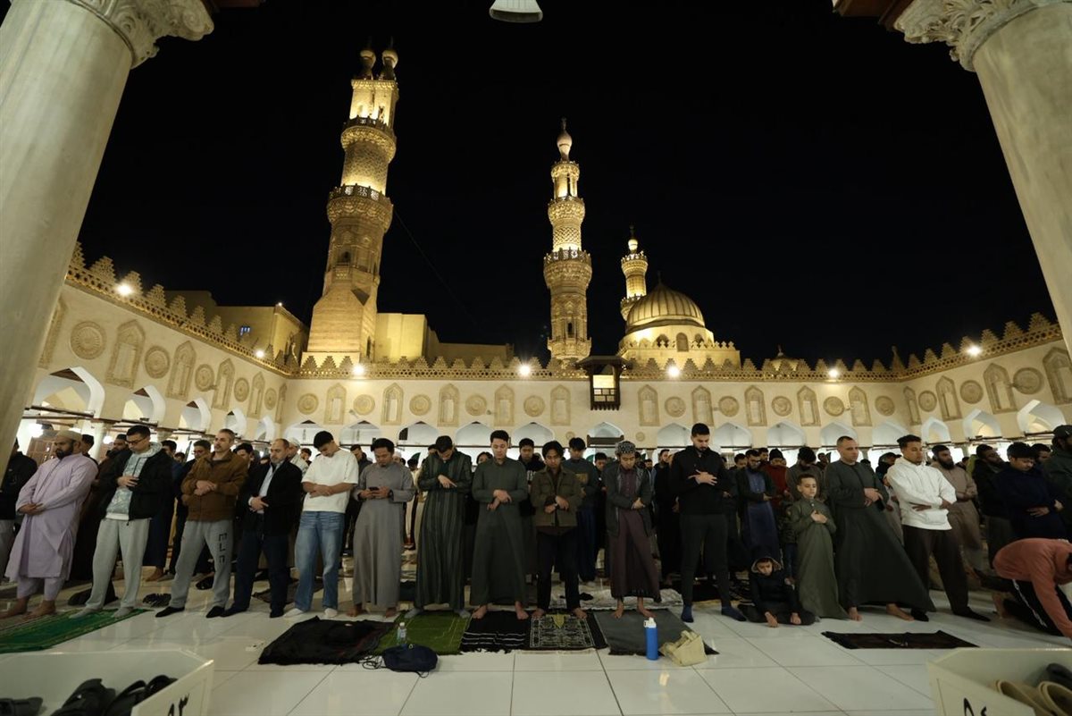 آلاف المصلين يؤدون صلاتي العشاء والتراويح بالجامع الأزهر