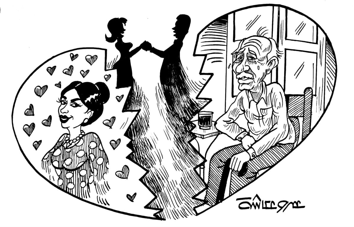 يتذكرها وهي تجري سريعًا في البيت الصغير تضيء الأنوار والمروحة الوحيدة في سقف الغرفة كي تستقبله بنسمة باردة تزيل عنه حر الصيف ولهيب المسؤولية، كانت عالمًا من الحنان والمحبة، مودة ورحمة صافية.