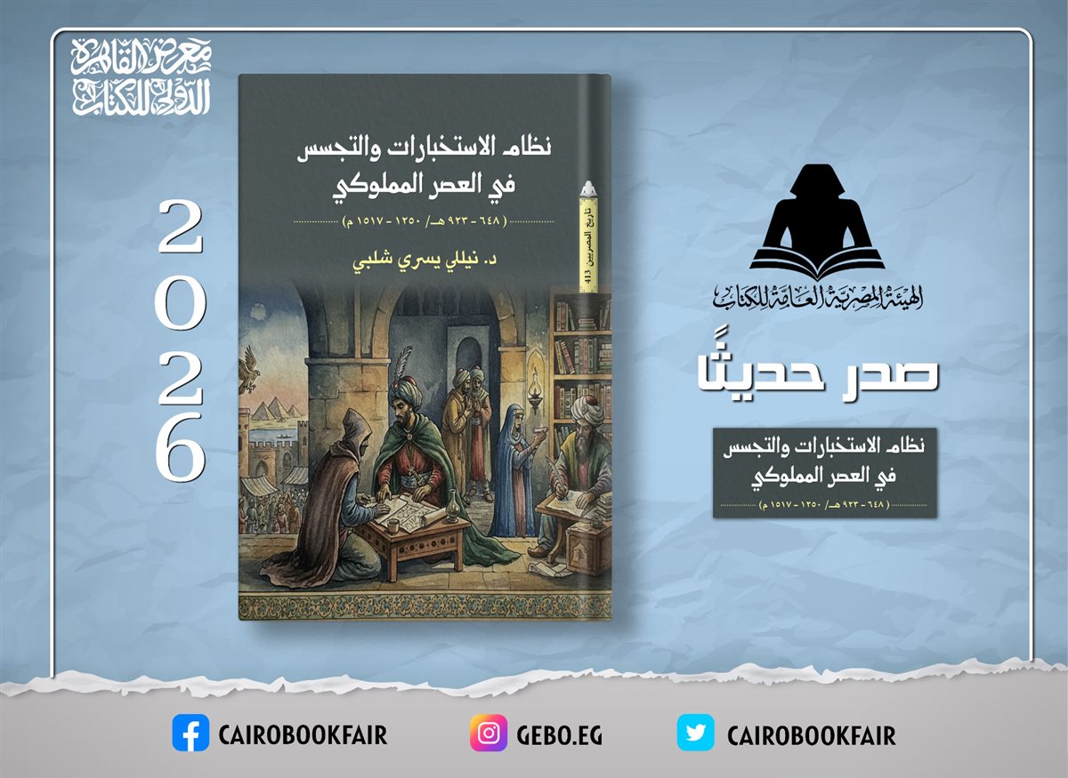 أصدرت الهيئة المصرية العامة للكتاب، ضمن إصدارات «سلسلة تاريخ المصريين»، كتاب «نظام الاستخبارات والتجسس في العصر المملوكي» للدكتورة نيللي يسري شلبي، وهو عمل علمي يتناول أحد الجوانب الحيوية في تاريخ الدولة المملوكية، كاشفًا عن الدور المحوري الذي لعبه نظام الاستخبارات في صناعة القرار السياسي والعسكري خلال تلك الحقبة الممتدة من عام ٦٤٨هـ/١٢٥٠م حتى ٩٢٣هـ/١٥١٧م.