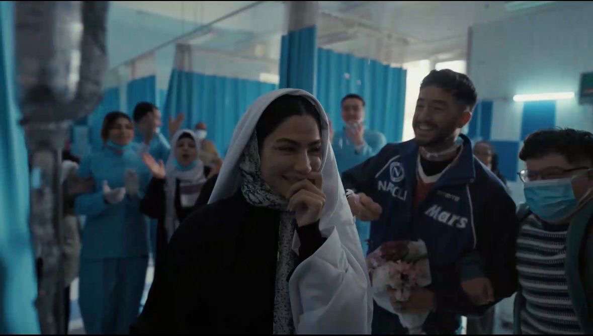 شخصية إبراهيم التي يقدمها أحمد مالك دخلت غرفة العلاج حاملاً ورد، وبقلب ممتلئ برغبة أن يخفف عن أحلام. في لفتة بسيطة لكنها شديدة الرمزية، حوّل الكمامة إلى بابيون، وغطاء سرير المستشفى إلى طرحة، وكأن المكان كله يتواطأ مع خياله ليصنع لها يومًا استثنائيًا.