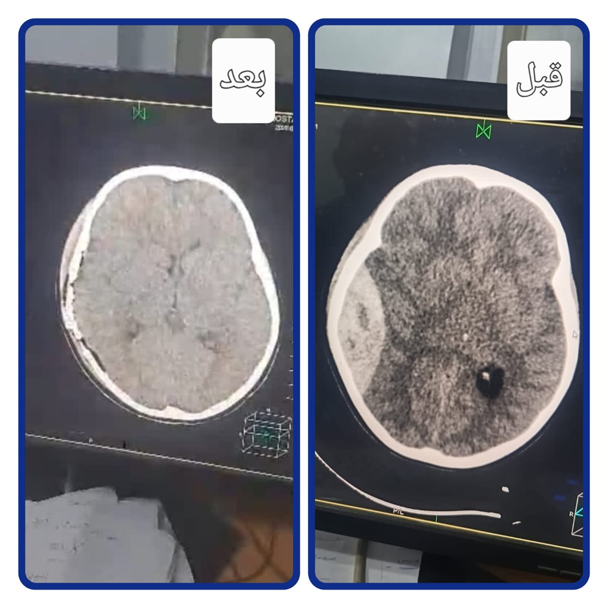 وخلال المتابعة الدقيقة، أظهرت الأشعة المقطعية وجود تجمع دموي آخر، ما استدعى التدخل الجراحي العاجل للمرة الثانية خلال أقل من 24 ساعة، حيث تمكن الفريق الطبي من إجراء العملية بنجاح، مع تفريغ النزيف والسيطرة على مصدره، ما ساهم في تحسن الحالة بشكل ملحوظ، واستعادة المريض لدرجة وعي كاملة (15/15)، قبل أن يتماثل للشفاء ويغادر المستشفى بحالة جيدة.