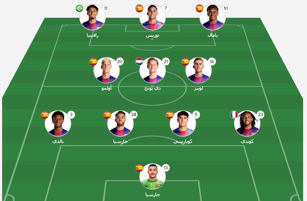 خط الوسط الهجومي: لامين يامال، أولمو، رافينيا