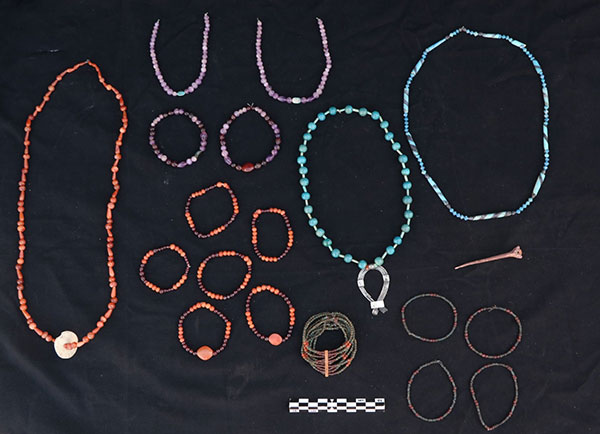 وأضاف أنه تم الكشف أيضاً في الفناء الخارجي للمقابر على مجموعة من الحلي تشمل مرايا من البرونز ومكاحل من الألبستر وعقود من الخرز المختلف الألوان والأشكال، والتمائم المتنوعة التي تعود إلى عصر الدولة الوسطى. ومازالت البعثة المصرية تعمل في الموقع للكشف عن المزيد من المقابر واللقى الأثرية.