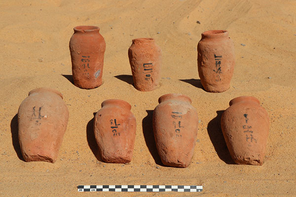 وقال الأستاذ محمد عبد البديع رئيس قطاع الآثار المصرية بالمجلس الأعلى للآثار، أن البعثة نجحت كذلك في الكشف عن غرفتي دفن بهما حوالي 160 من الأواني الفخارية متنوعة الأحجام والأشكال من عصر الدولة القديمة، أغلبها في حالة جيده من الحفظ وعليها كتابات باللغة الهيراطيقية حيث تشير الدراسات الأولية إلى أنها كانت تستخدم لتخزين السوائل والحبوب.