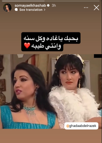 نشرت الفنانة سمية الخشاب صورة جديدة عبر حسابها على منصة "X" تجمعها بالفنانة غادة عبد الرازق، لتضع حدًا لكل الشائعات حول وجود خلاف بينهما، وأرفقت سمية الصورة بتعليق دافئ، قالت فيه: "بحبك يا غادة وكل سنة وأنت طيبة"، لتؤكد أن العلاقة بينهما قائمة على الاحترام والود المتبادل.