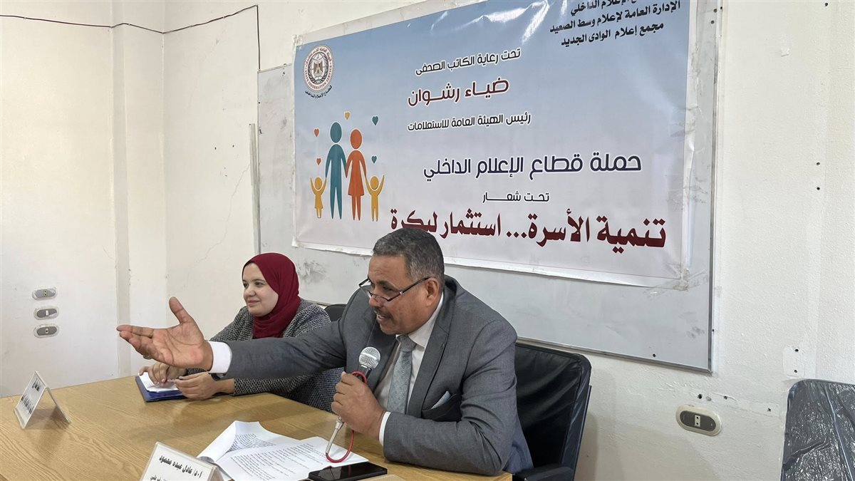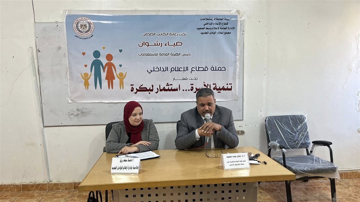 حشدت إدارة إعلام الوادي الجديد جهودها التوعوية في ندوة موسعة استضافتها كلية البنات الأزهري تحت رعاية الدكتور أحمد يحيى رئيس قطاع الإعلام الداخلي وبإشراف حمدي سعيد رئيس الإدارة المركزية لإعلام شمال ووسط الصعيد لبحث آليات استقرار الأسرة المصرية.