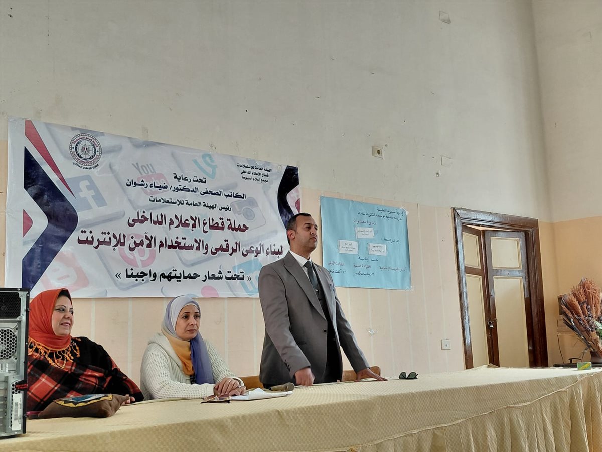حيث جرت وقائع اللقاء تحت إشراف ومتابعة حمدي سعيد وكيل الوزارة ورئيس الإدارة المركزية لإعلام شمال ووسط الصعيد أسيوط وبحضور مكثف من طالبات المدرسة وأعضاء هيئة التدريس والقيادات التعليمية بالمحافظة سعيا من إدارة إعلام أسيوط بقيادة عبير جمعة حسين إلى ترسيخ مفاهيم الانضباط التكنولوجي داخل المؤسسات التربوية والتعليمية باعتبارها الحصن الأول لحماية الطالبات